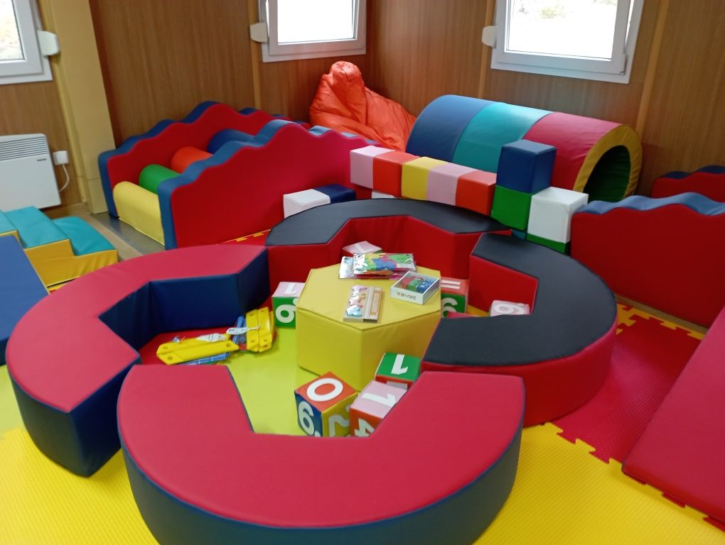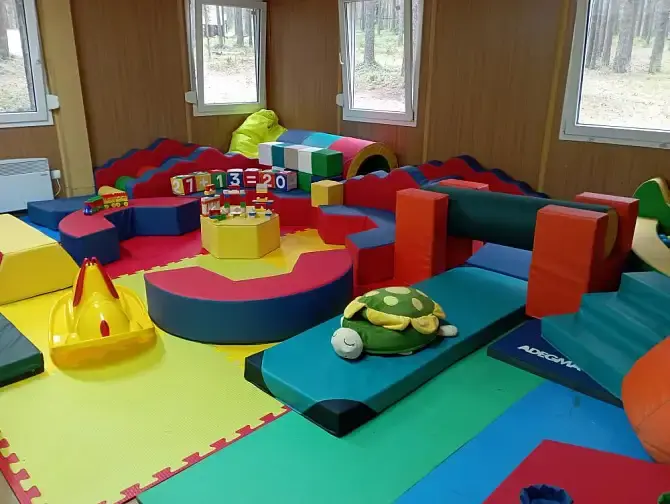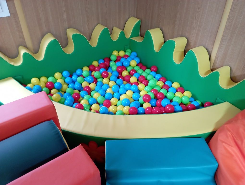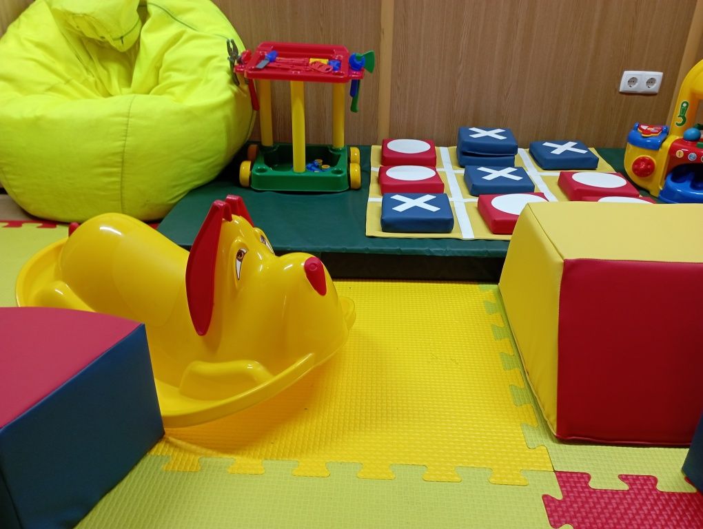 В игровой комнате установлен сухой бассейн с шарами, тоннели, кегли и есть все для развития и досуга ребенка: кубики, конструкторы, световой стол для рисование песком, настольные игры и многое другое.