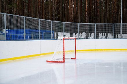 На базе оборудована современная хоккейная коробка 56х26 метров.