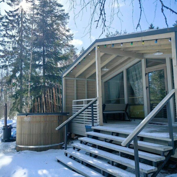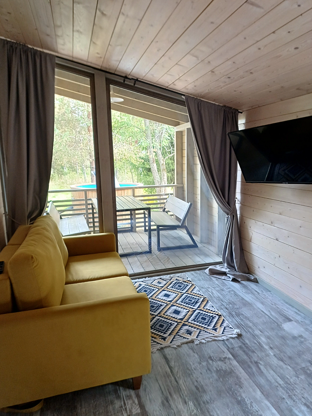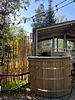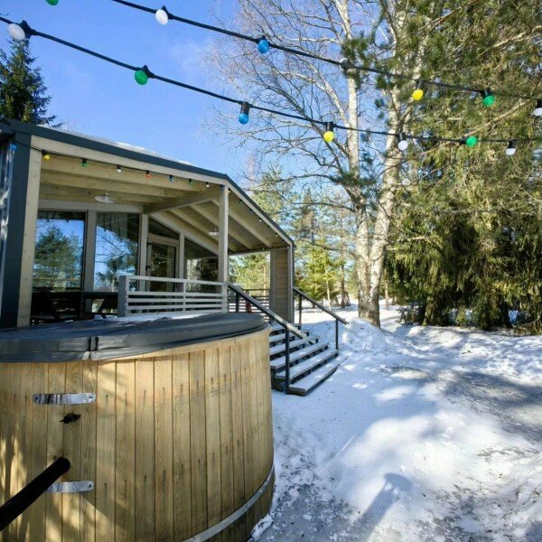 У коттеджа №1 располагается купель с подогревом. Бронируя этот коттедж, вы можете дополнительно арендовать купель.