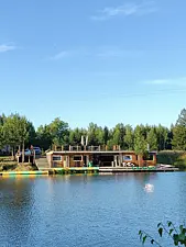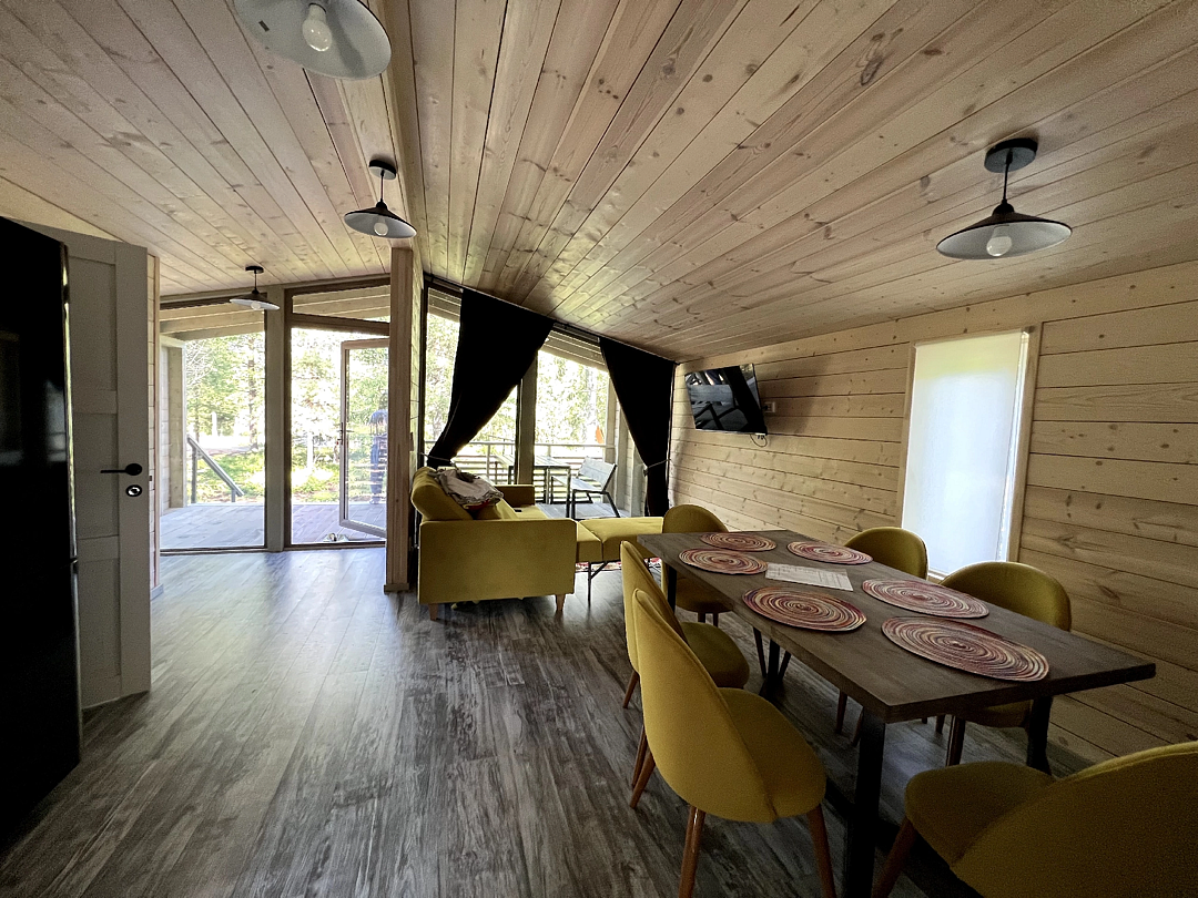Семейный отдыхДостоинстваОчень аутентичное, уютное место. Прокат лодок и сапов, баня, купель у одо рыбалка, продуманная планировка в домике, чистота, есть всё, включая блюда для сервировки стола, штопор, стопки, хороший холодильник, пакеты для льда и др. Шикарнейший вид из окна каждой комнаты, витражные окна в пол.