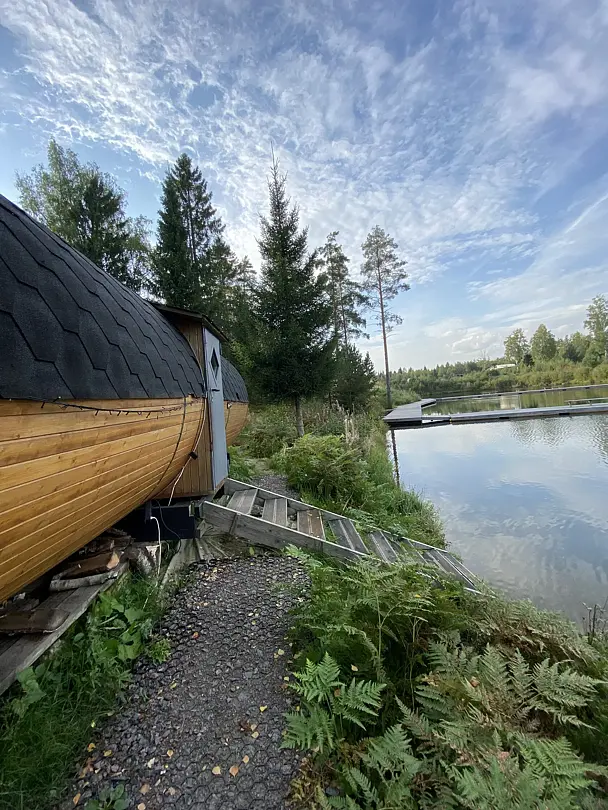 Баня на берегу озера. Рассчитана на 8–12 человек.