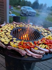 Мангал классический. Можно прыгать с собственного мостика в воду после парений.