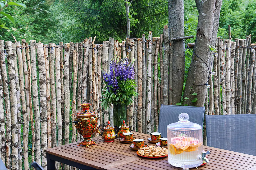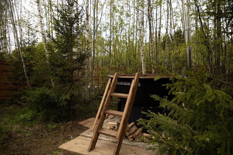 На территории всех домов есть чаны и самый большой выбор ароматных наполнений. В большом доме «Барский дом» есть своя сауна, а в домах Garden-1 и Garden-4 — своя баня. Каждый дом имеет собственную мангальную зону с шампурами и решеткой. В 3-х км от базы отдыха находятся супермаркеты Пятерочка и Магнит, а в каждом домике есть вся необходимая посуда для приготовления еды. Также есть возможность заказа блюд прямо в ваш домик.