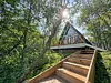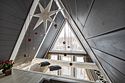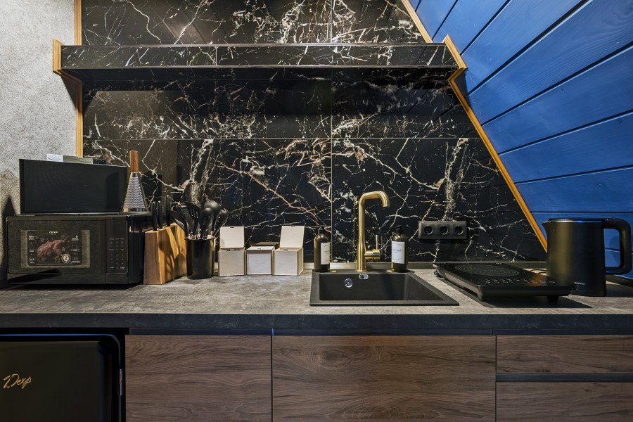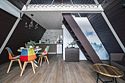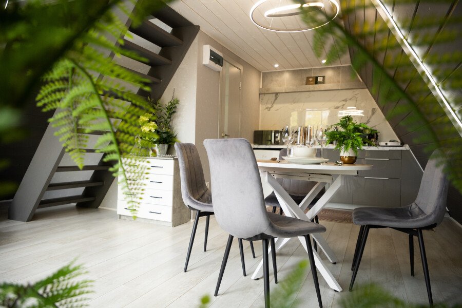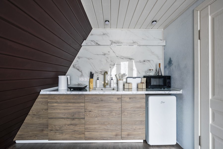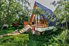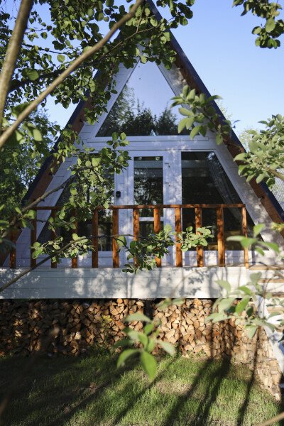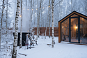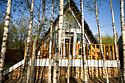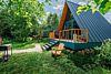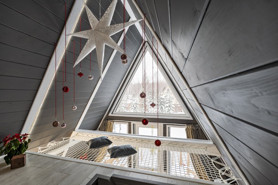 Среди берез и елей расположился стильный, треугольный дом и с шикарным дизайном внутри — River 5. Дом идеально подойдет для семейного отдыха, а из панорамных окон открывается потрясающий вид на живописный лес.