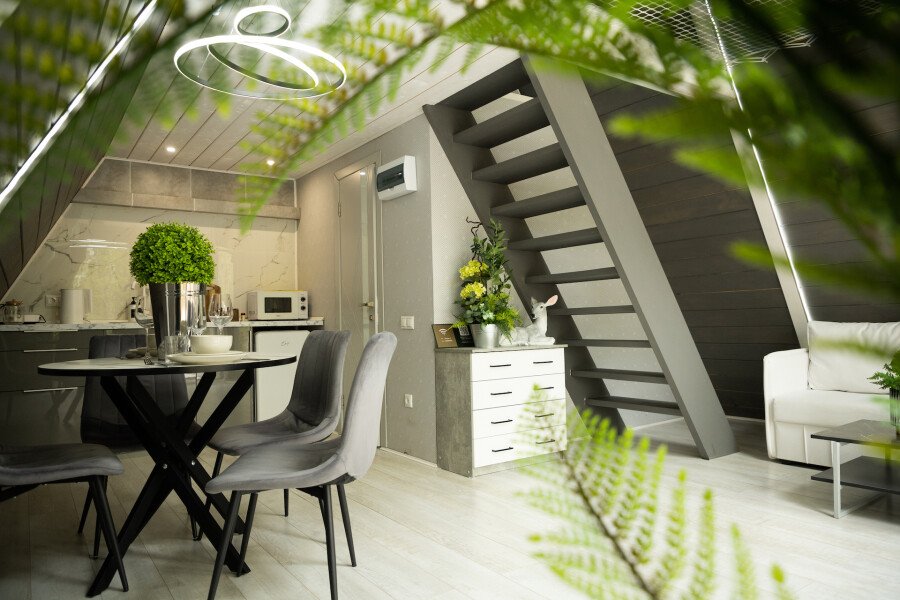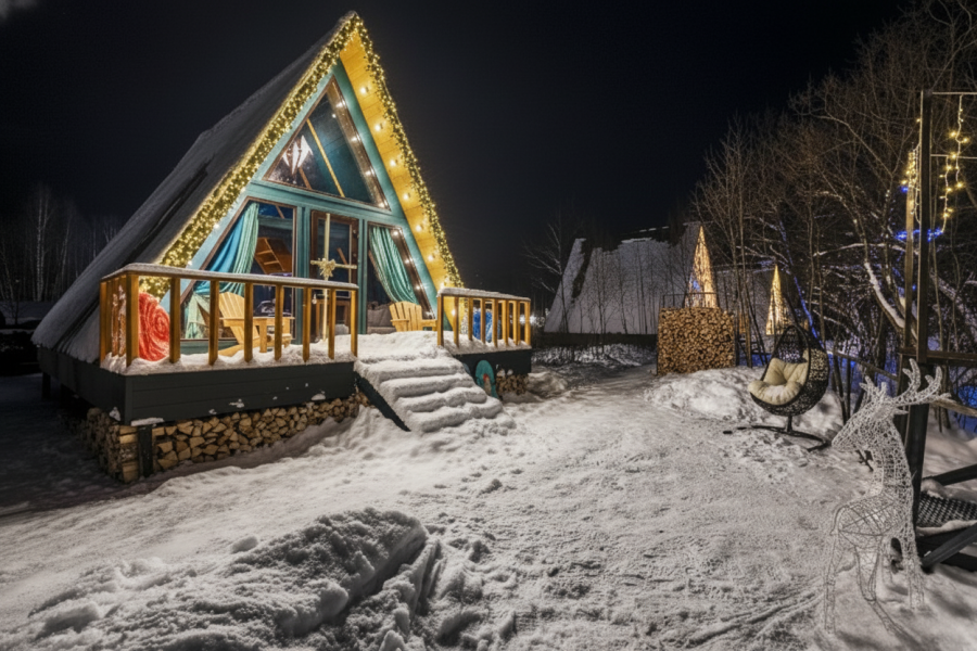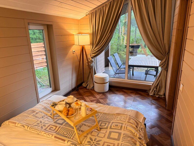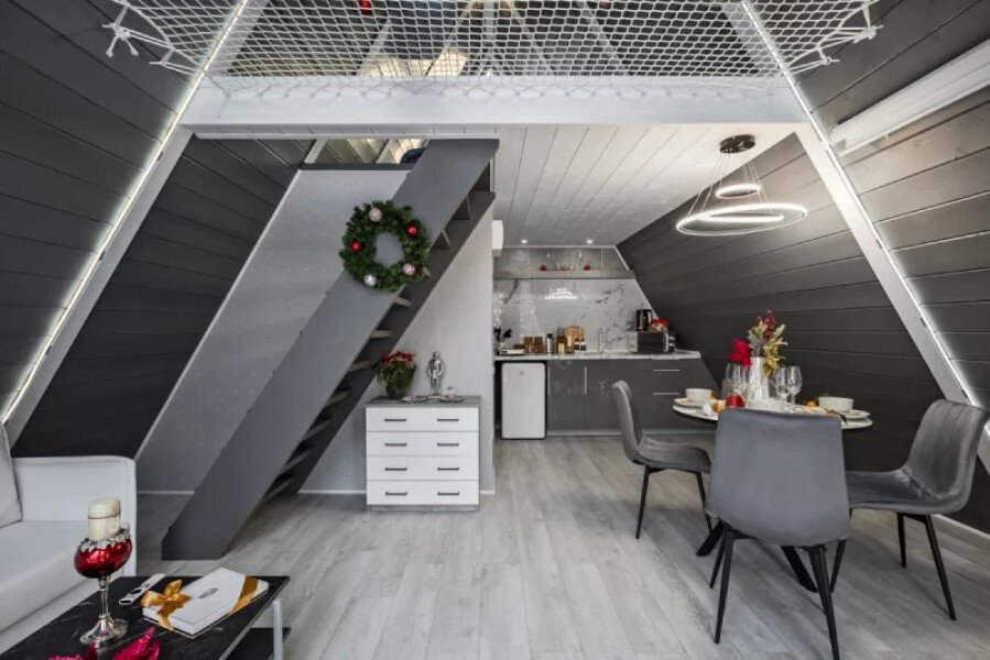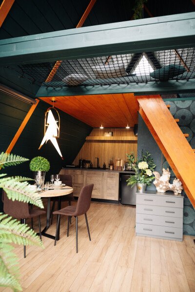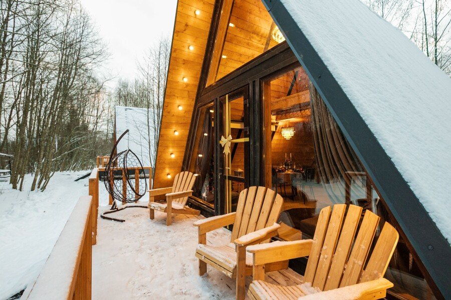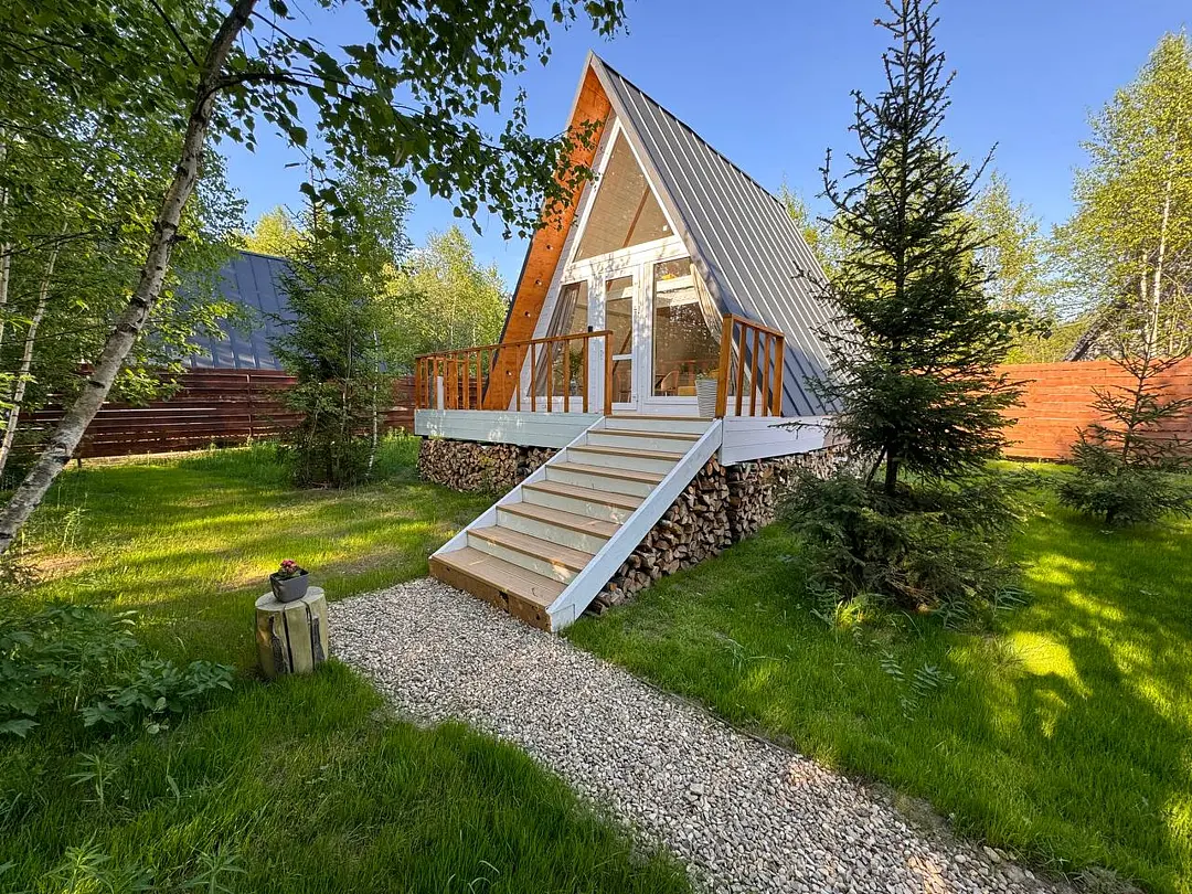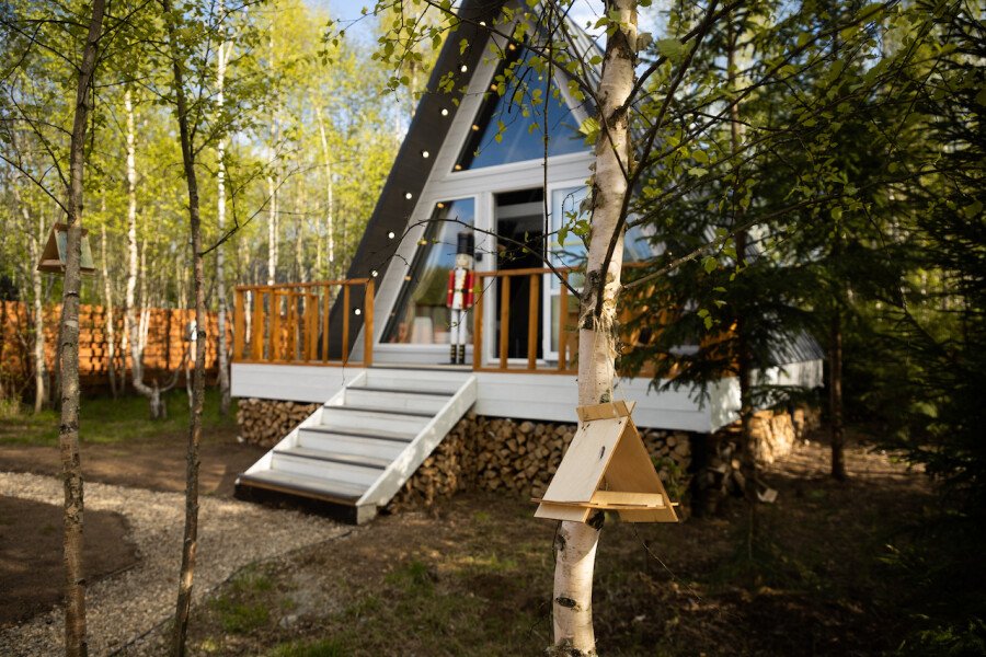 River 3 VIP — это стильный и современный дом a-frame. Он расположен недалеко от реки в окружении леса. Уютный интерьер создает атмосферу гармонии и покоя.