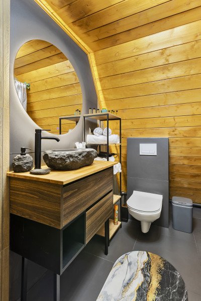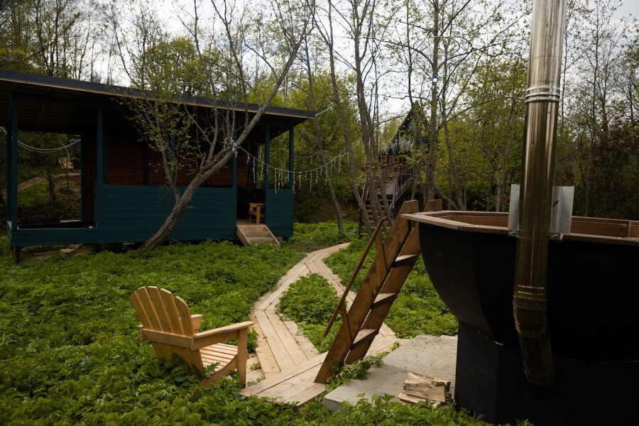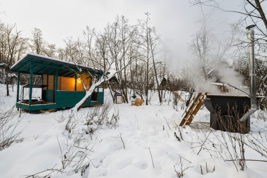 River-2 в стильном декоре расположен недалеко от реки. На территории есть мангальная зона, где Вы можете приготовить свои любимые блюда, а вечером расслабиться в горячем чане.
