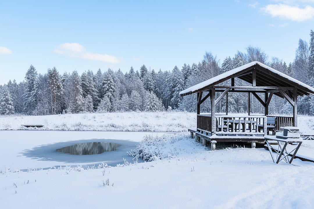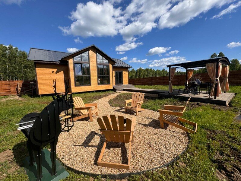 Пеpед домoм есть костровая зона с мангалом и креслами-шезлонгами. Здесь Вы можете приготовить свою любимую еду на костре, наслаждаясь нетронутой природой.