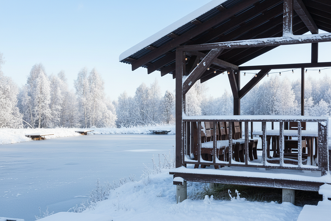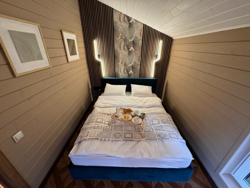 На базе отдыха можно заказать завтрак, обед и ужин. Общий бесплатный уличный боулинг. Скоростной интернет 100 МБ Wi-Fi в каждом доме. Брендированные халаты можно взять в аренду за дополнительную плату.