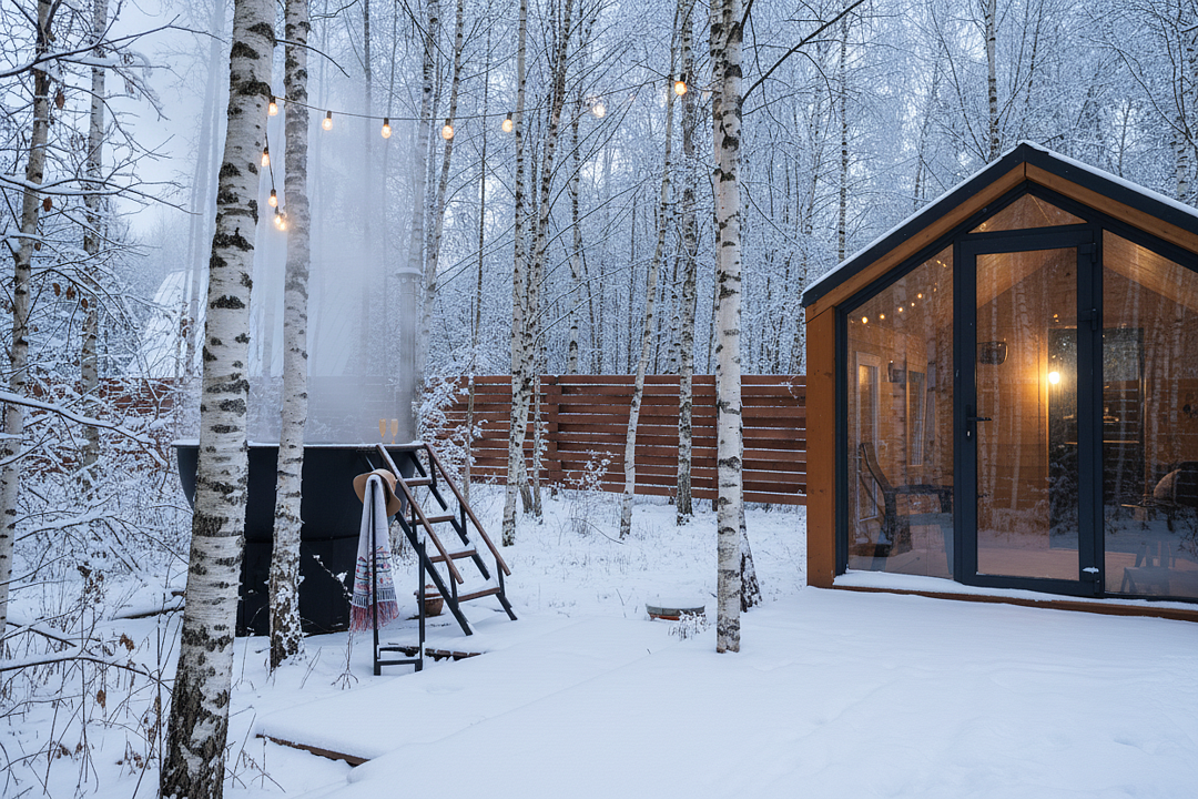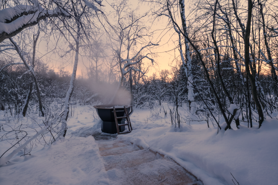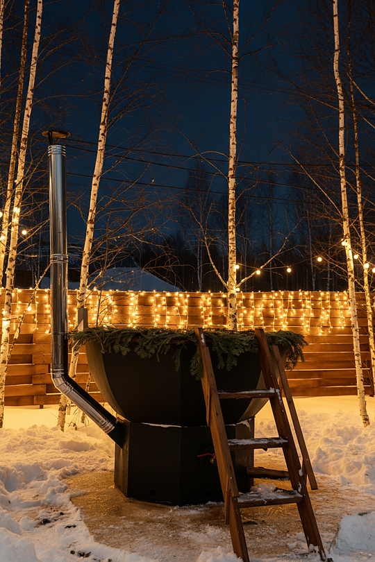 - сходить в баню и расслабиться в горячем чане наполненном цитрусами и еловыми ветками (наполнение чана на выбор);