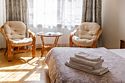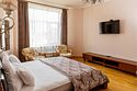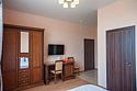Комната категории Стандарт плюс, с большой модульной двуспальной кроватью, которую можно разделить на два односпальных места. Так же в комнате есть телевизор, письменный стол, шкаф для одежды. Постельное белье из 100% хлопка. Предусмотрены варианты размещения с двумя раздельными кроватями, шириной 1.5 м. Дополнительные места для взрослых и детей старше 3-х лет, в данной категории комнат предоставляются за дополнительную плату. Возможно размещение детей до 3-х лет в детской кроватке. В ванной комнате есть: биде, ванна, раковина, унитаз, набор полотенец, гель для душа, шампунь.Услуги и удобства