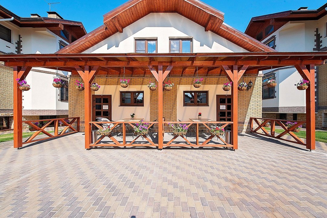 Стандарт ПЛЮС с отдельным входом — просторный, с отдельным входом с улицы и отличной звукоизоляцией. Отличается от обычного наличием террасы при входе. Уровень пола возвышен над землей всего на одну ступень. Это очень удобно и безопасно для пар с маленькими детьми и для людей с ограниченными физическими возможностями. Состоит из трех комнат: прихожая, санузел, спальня. В прихожей имеется: холодильник, вешалка, зеркало и достаточно места для детской коляски. В комнате: большая двуспальная кровать, прикроватные тумбочки, гардероб с зеркалом, стол с двумя пуфами, телевизор, Wi-Fi, микроволновка, электрический чайник, чайный набор с посудой, кувшин с питьевой водой. Ванная комната оборудована душевой кабиной, умывальником, унитазом и бидеУслуги и удобства