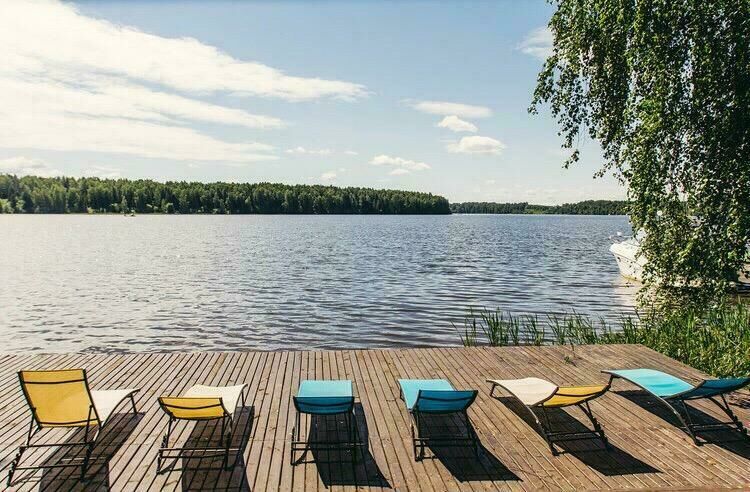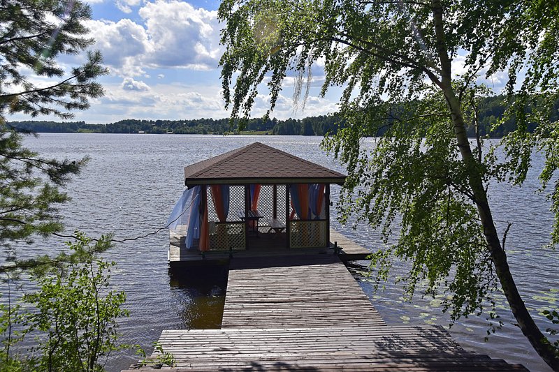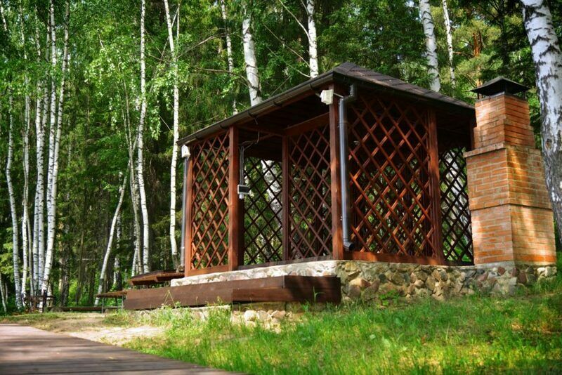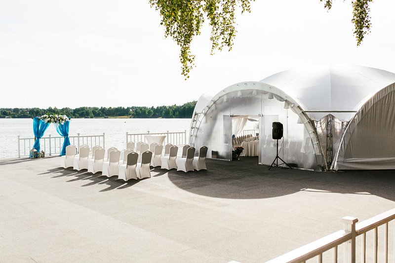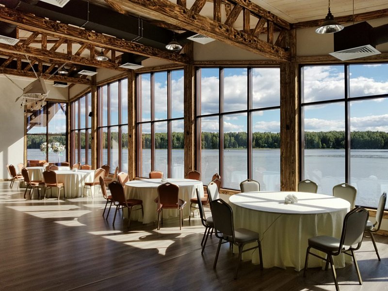 Здесь есть несколько банкетных залов. Благоустроенный берег реки Меры и живописный лес станут отличными декорациями для свадебной фотосессии. Есть площадки для красивой церемонии регистрации. Гости могут разместиться в номерах отеля или в домах, рассчитанных на компанию или семью.