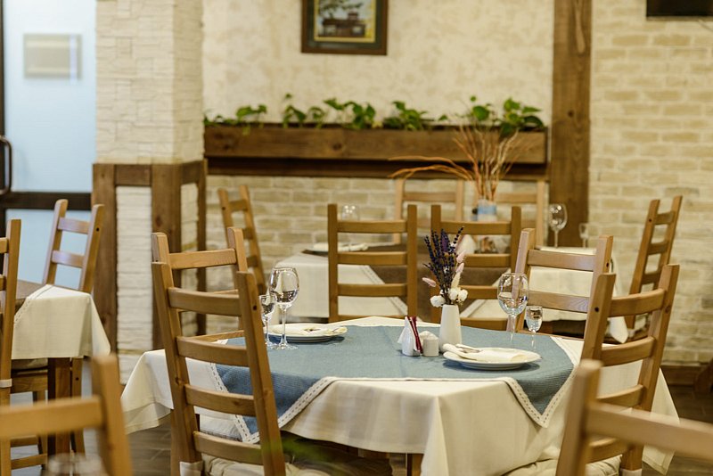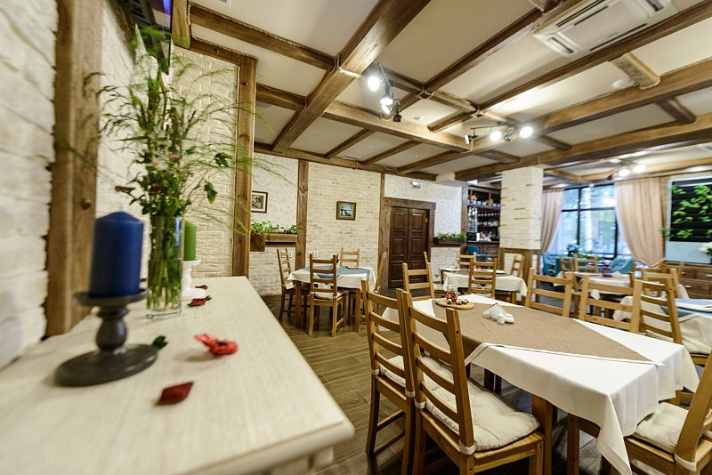 Ресторан «Кравчий» вмещает до 100 гостей. Он одинаково подойдет как для спокойного семейного обеда или душевного общения со старыми друзьями, так и для торжеств любого уровня. Работает круглый год. Площадь ресторана составляет 170 кв. м.