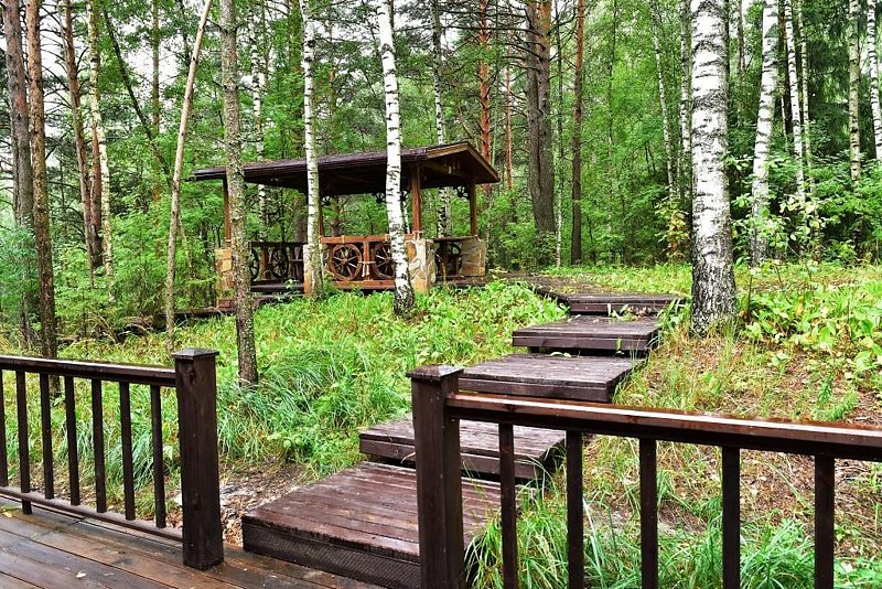 Поездом до ж/д вокзала г. Иваново, далее на автобусе №268 до остановки «Заволжск», далее на автобусе №268 до остановки «Степаново», далее пройти 1,12 км до эко-комплекса.