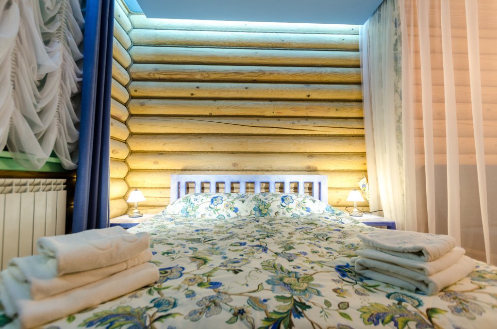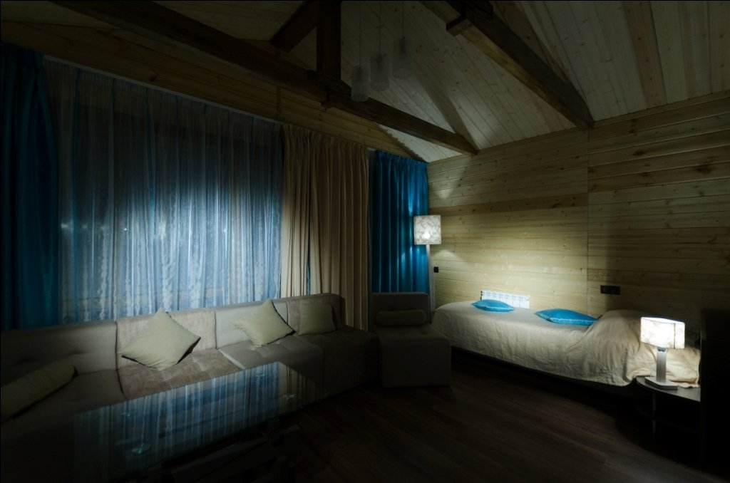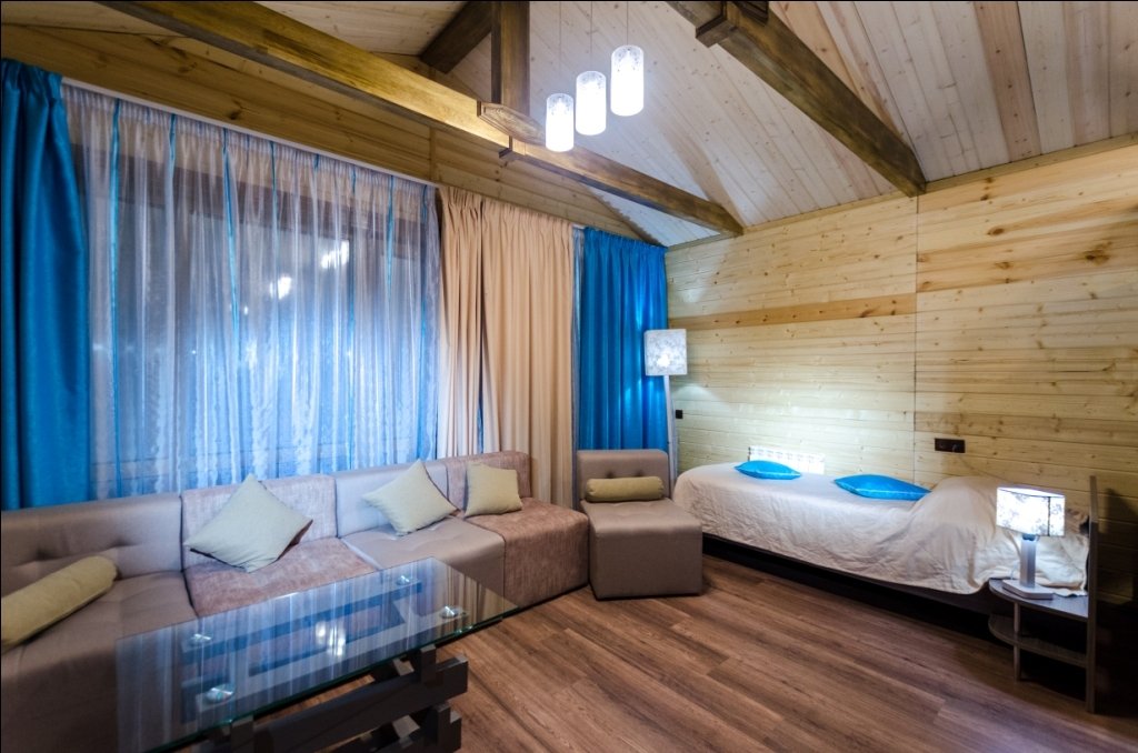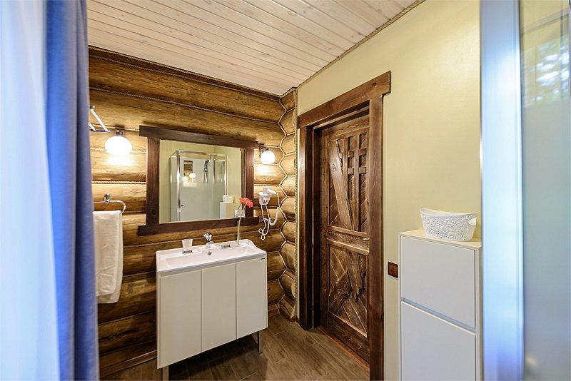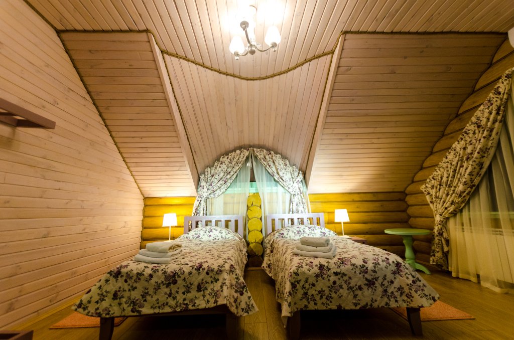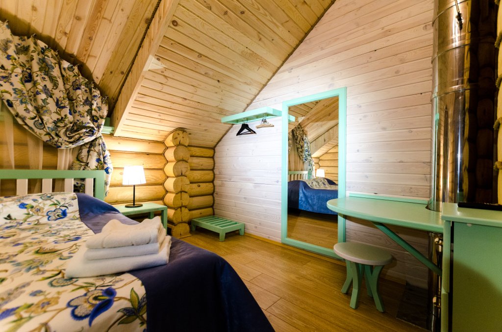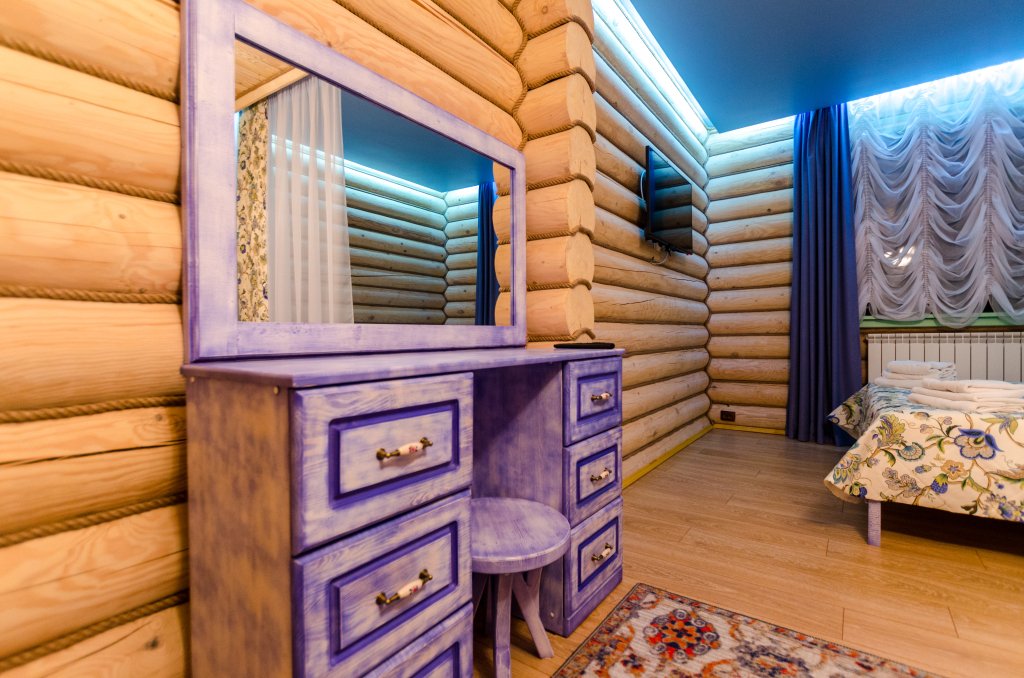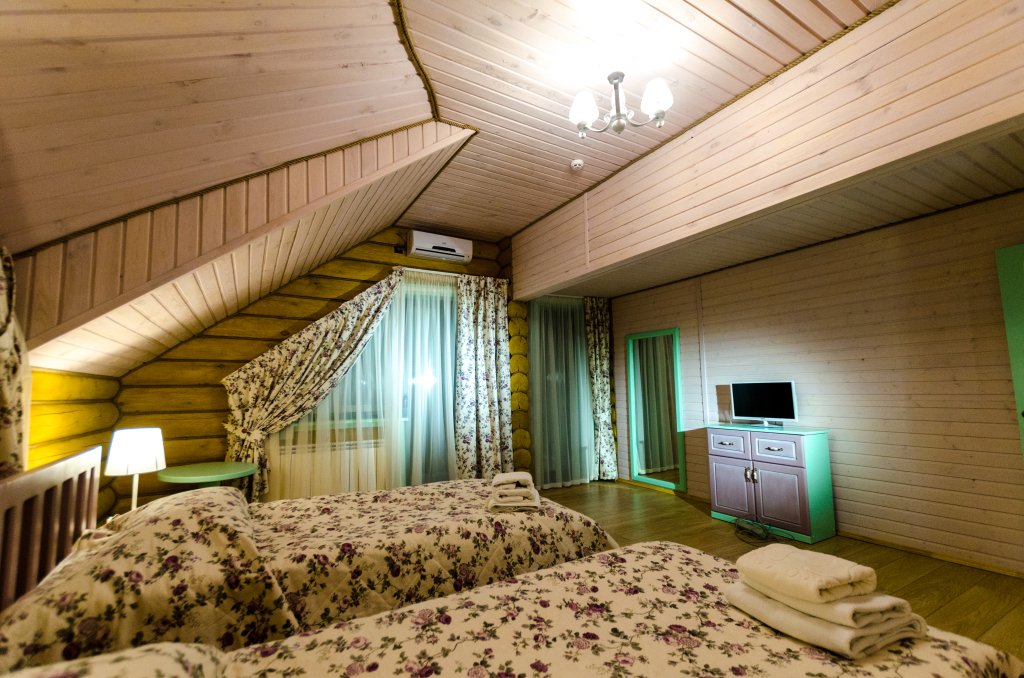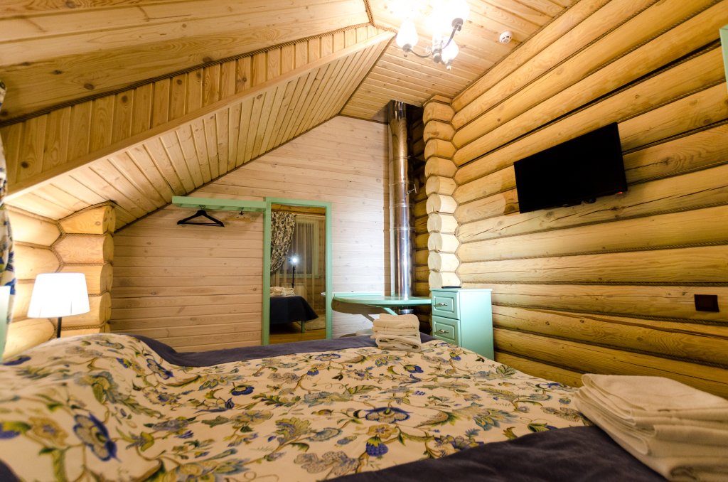 2-х комнатный номер с отдельным входом, занимает весь 1 этаж дома из бревен на 2 номера, располагается недалеко от основного корпуса. Интерьер номера выполнен в старорусском стиле, лучшем для отдыха на природе и смены обстановки после городской квартиры. Вся мебель и осветительные приборы ручной работы. Номер рассчитан для проживания семьи или небольшой компании. В спальне — двуспальная кровать и раскладной диван, в гостиной — мягкая зона с раскладным диваном, телевизор, санузел с душевой кабиной.