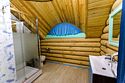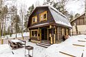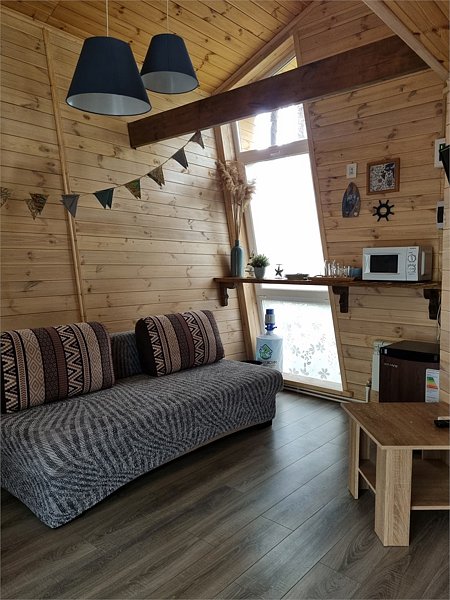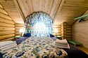 Необычный дом, третий из серии таких домов, идеально вписанный в природную среду, с панорамными окнами, просторный и в то же время, очень уютный. Идеальный вариант для проживания семьи с детьми в коттедже или для пары, небольшой компании. На первом этаже — гостиная с телевизором и раскладным диваном на 2 спальных места, зона мини-кухни с барной стойкой, санузел с душевой кабиной, на втором этаже — спальня с бокс-кроватями, которые могут быть преобразованы как в 1 большую кровать, так и в 2 раздельных кровати без потери удобства.
