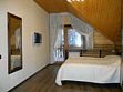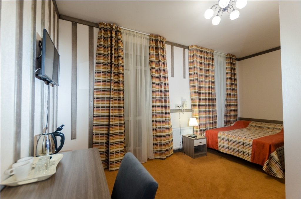 Номер с общим балконом и видом на реку Мера. Спальня с большой кроватью. В небольшой гостиной – диван, мини-холодильник, телевизор, шкаф, чайник и чайный набор. Санузел с душевой кабиной. Номер расположен на втором этаже.