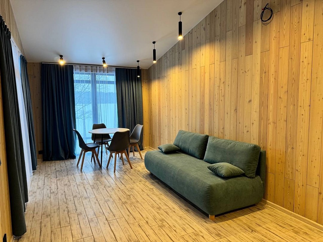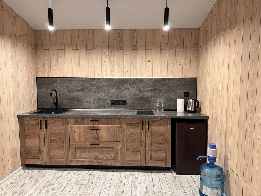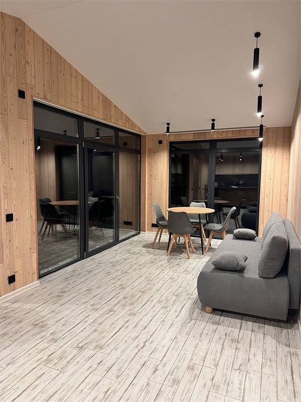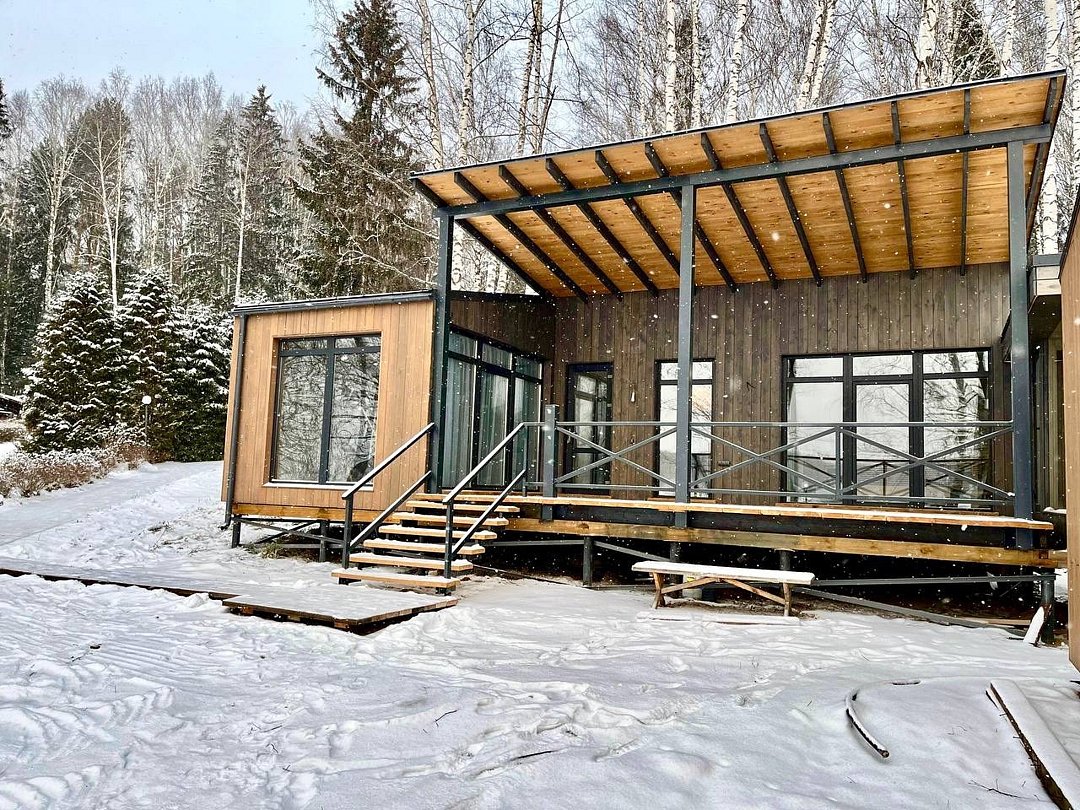 Для вашего удобства: мини-кухня с базовым набором посуды, бесплатный Wi-Fi • После прогулок по лесу или берегу реки, расслабьтесь в собственной сауне, расположенный рядом с вашим домом. Это идеальное завершение дня, полное тепла и релакса. С нетерпением ждем вас в Эко комплексе Кантри Хоум.