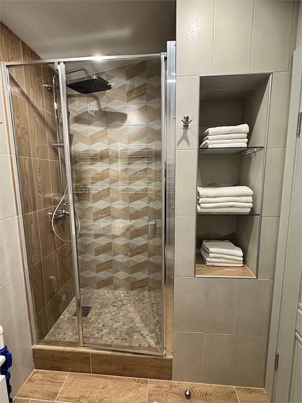 Уютный номер с видом на береговую часть комплекса. Двуспальная кровать, телевизор, мини-холодильник, чайник и чайный набор. Санузел с душевой кабиной.