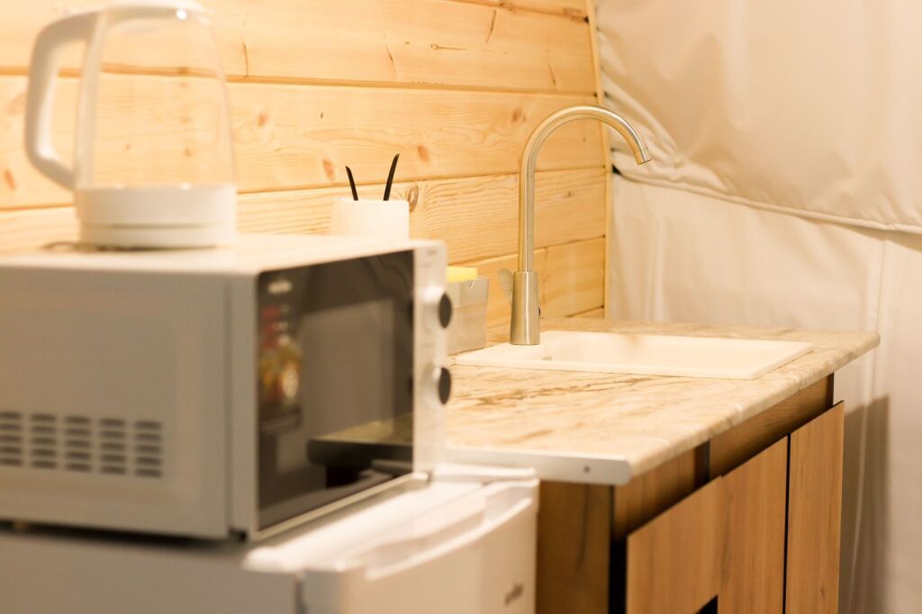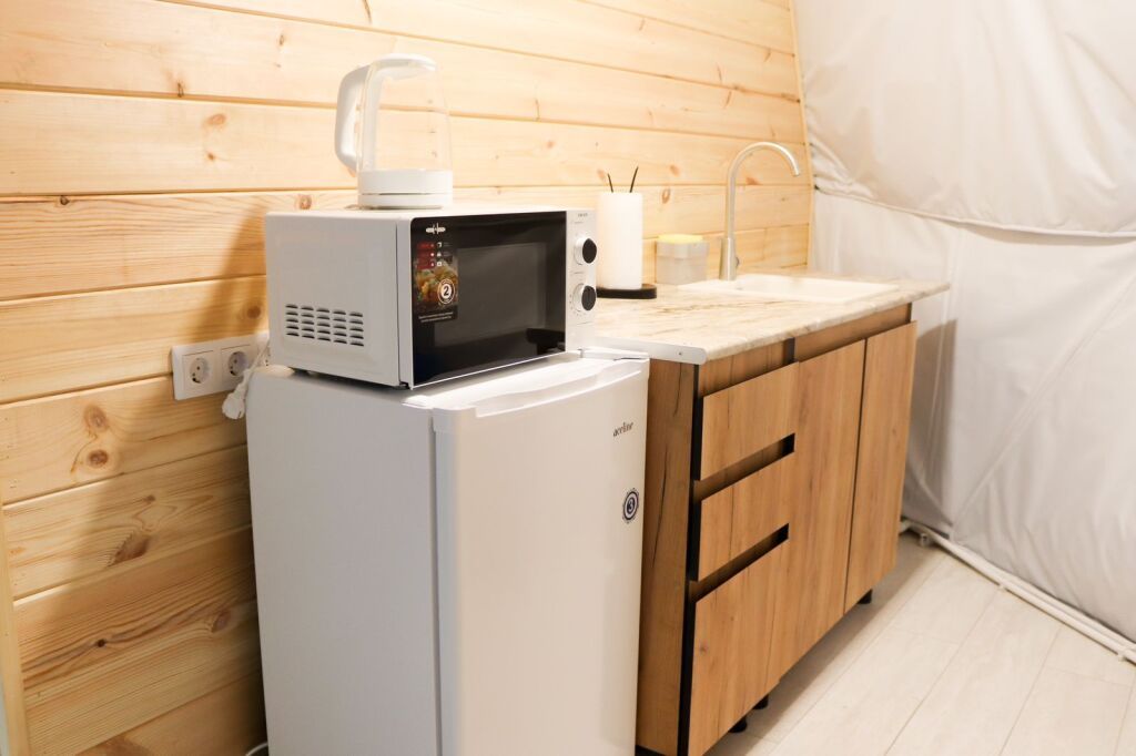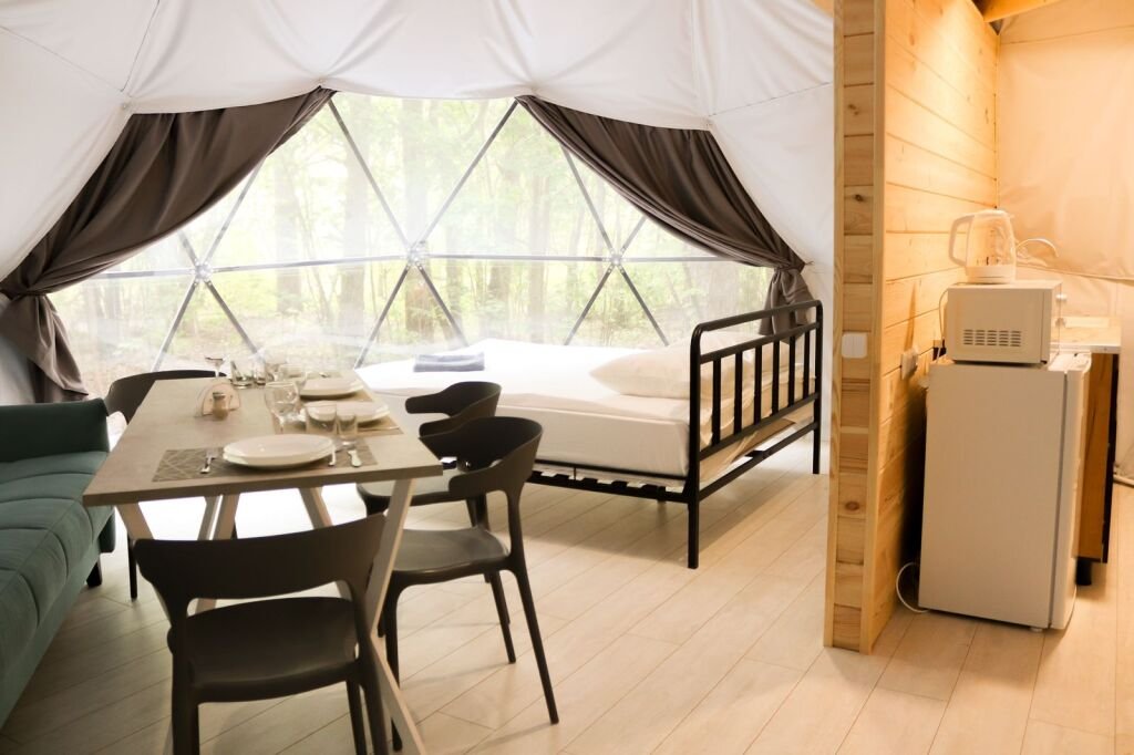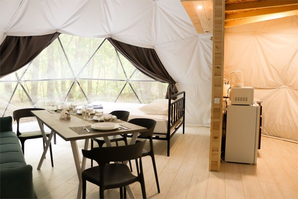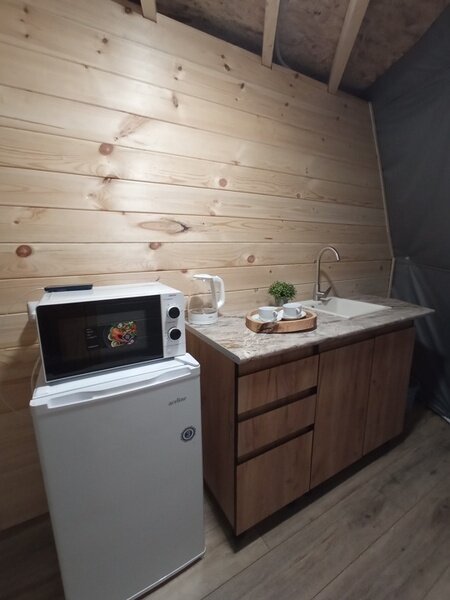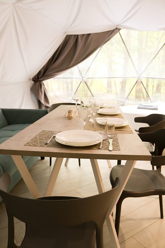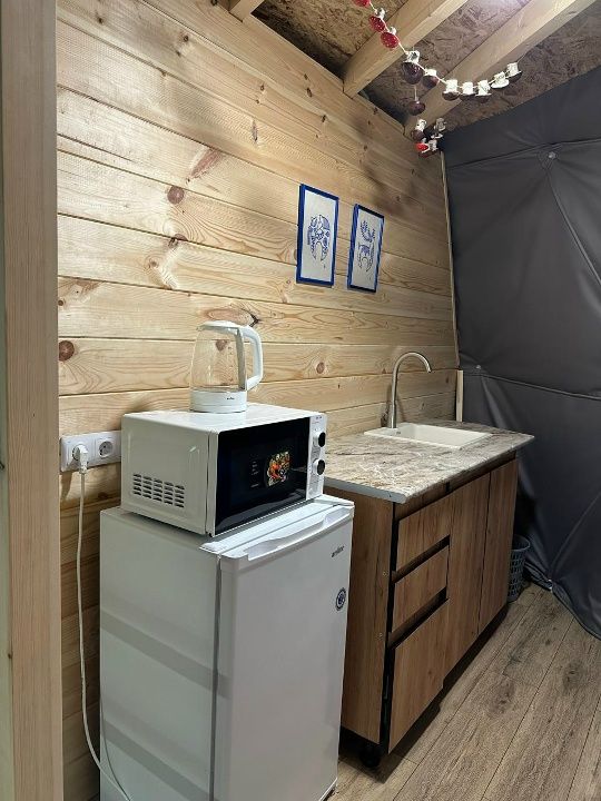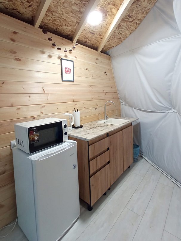 Семейный отдыхДостоинстваОтдых прошел замечательно. Проживали в геокупале #4. Очень уютно. Всё продумано: горячая вода, теплые полы, холодильник, микроволновка, чайник, посуда (даже сервирован стол), около домика чан (оплачивается отдельно), мангал, столик со стульями, красивая вечерняя подсветка. Есть возможность порыбачить.