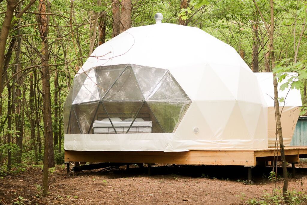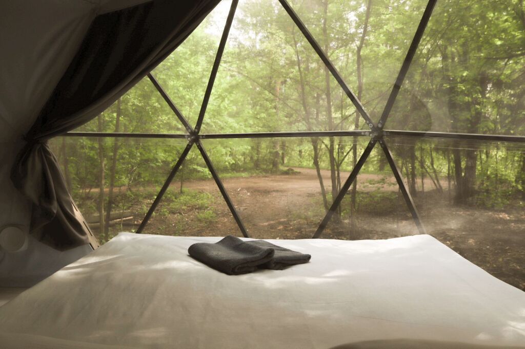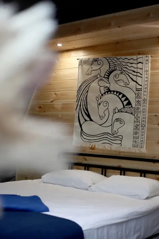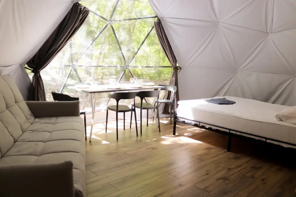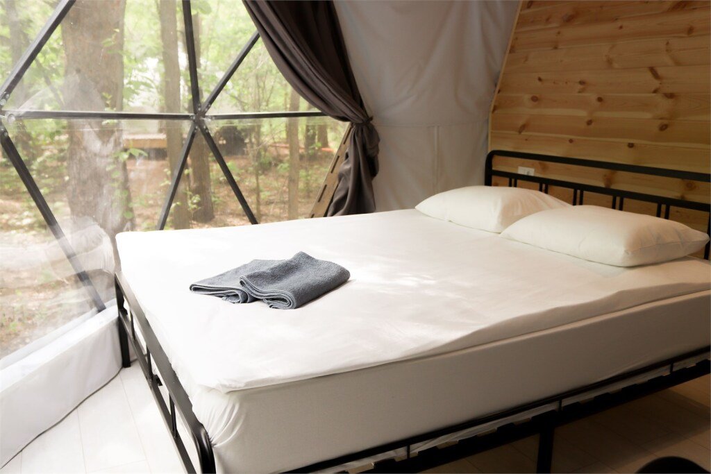 Одна двуспальная кровать, одна диван-кроватьВ глэмпинге