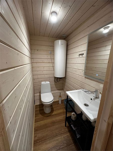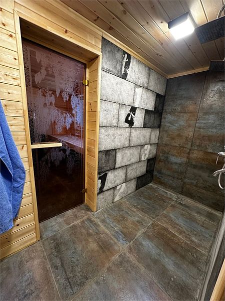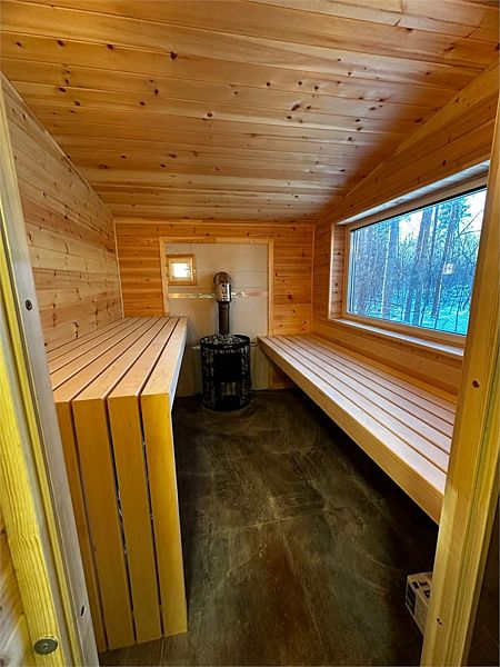 Двухэтажная баня построена с соблюдением вековых традиций. Дровяная печь и камни помогают получить идеальное количество горячего пара. Баня рассчитана для пребывания до 20 человек, и в нее входит: парилка с печью на дровах, душевая, просторная комната для отдыха с телевизором, кухня с микроволновкой, чайником и всей необходимой посудой.