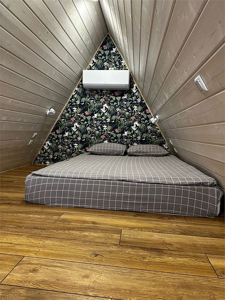 Четыре двуспальные кровати, три диван-кроватиВ а-фрейме