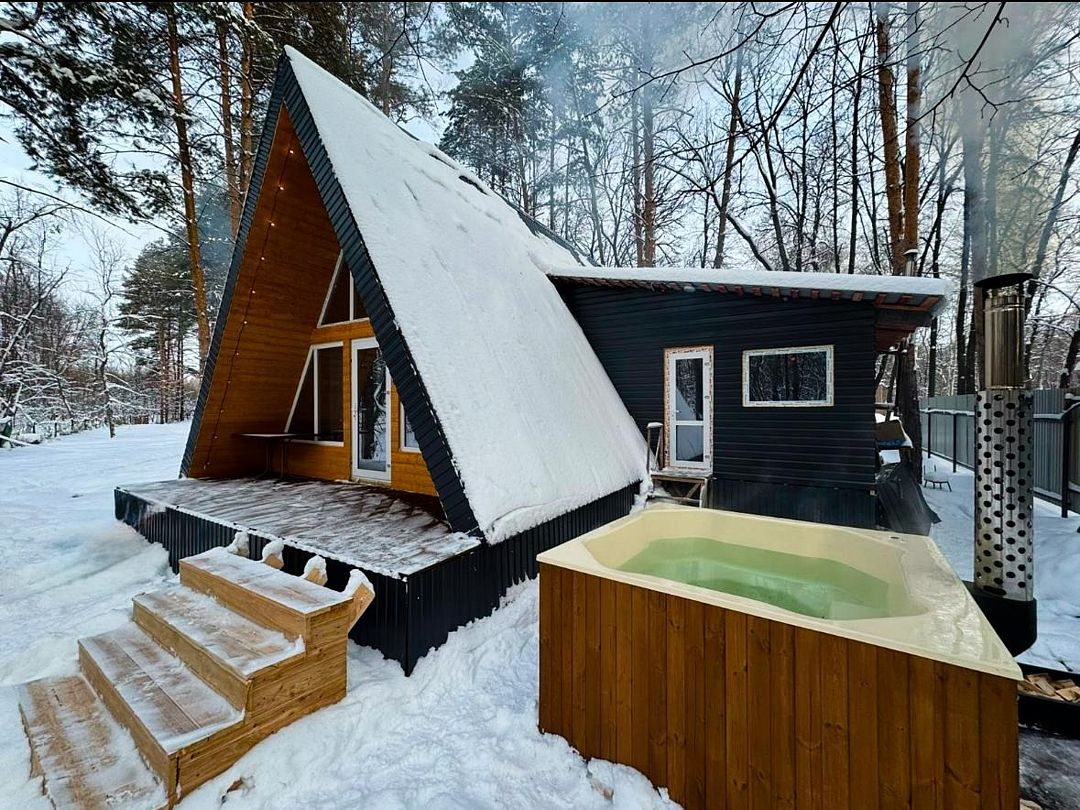 Дом А-Frame №9 «Grand» с гидромассажной купелью и сауной!