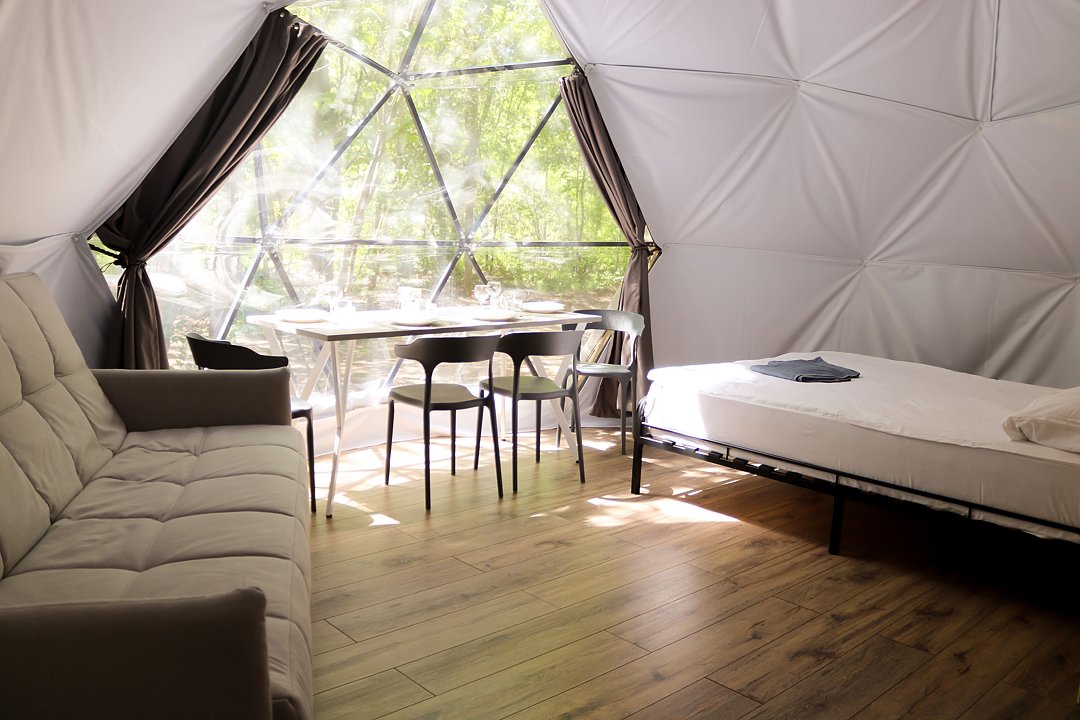 Одна двуспальная кровать, одна диван-кроватьГеокупол №2