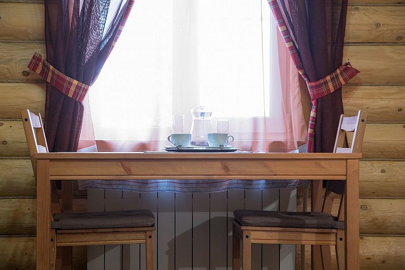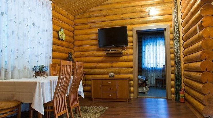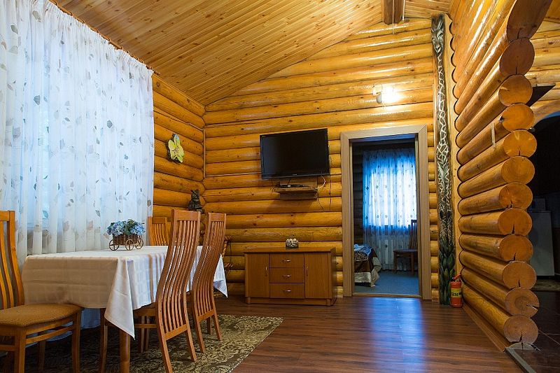 VIP дом –уютный одноэтажный домик, площадью 50 кв. м, интерьер которого выполнен в коттеджном стиле, деревянная отделка и мебель из различных пород дерева. Максимальное размещение: 4 человека + 2 человека на дополнительных местах.