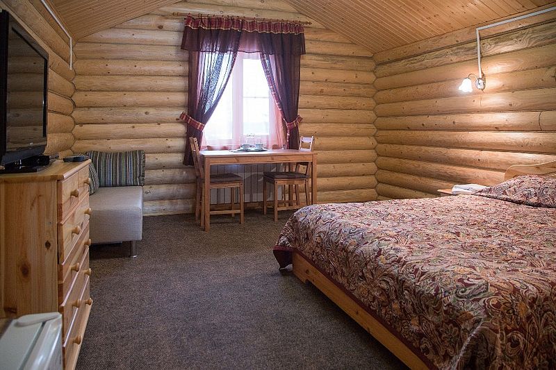 На площади пять гектаров расположен комплекс из 15 одноэтажных коттеджей, стилизованных под русские избы. Все домики оборудованы необходимой бытовой техникой, мебелью, санузлом с душем, в некоторых есть собственные сауны, а отделка интерьеров выполнена из экологически чистых материалов.