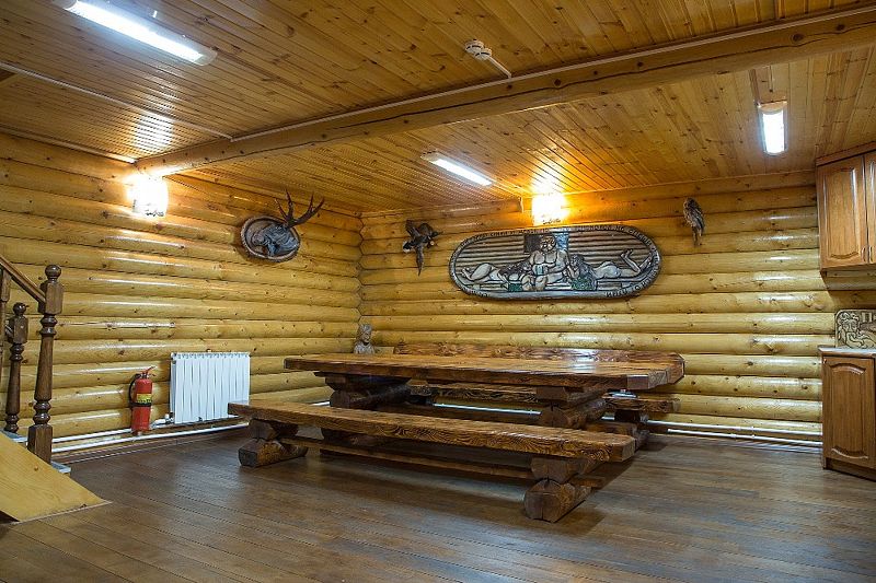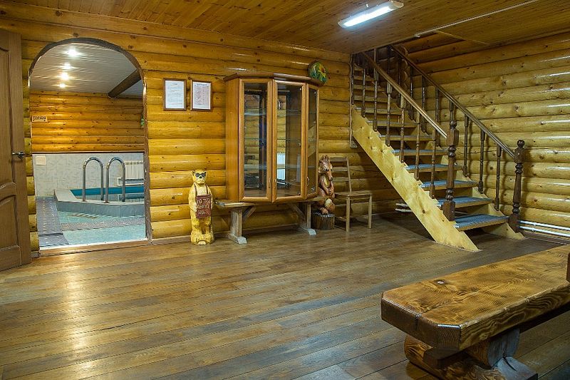 На первом этаже коттеджа расположены просторная парная с печью на дровах, купель с прохладной родниковой водой, душевые кабины, санузел, раздевалка, а также комната отдыха.