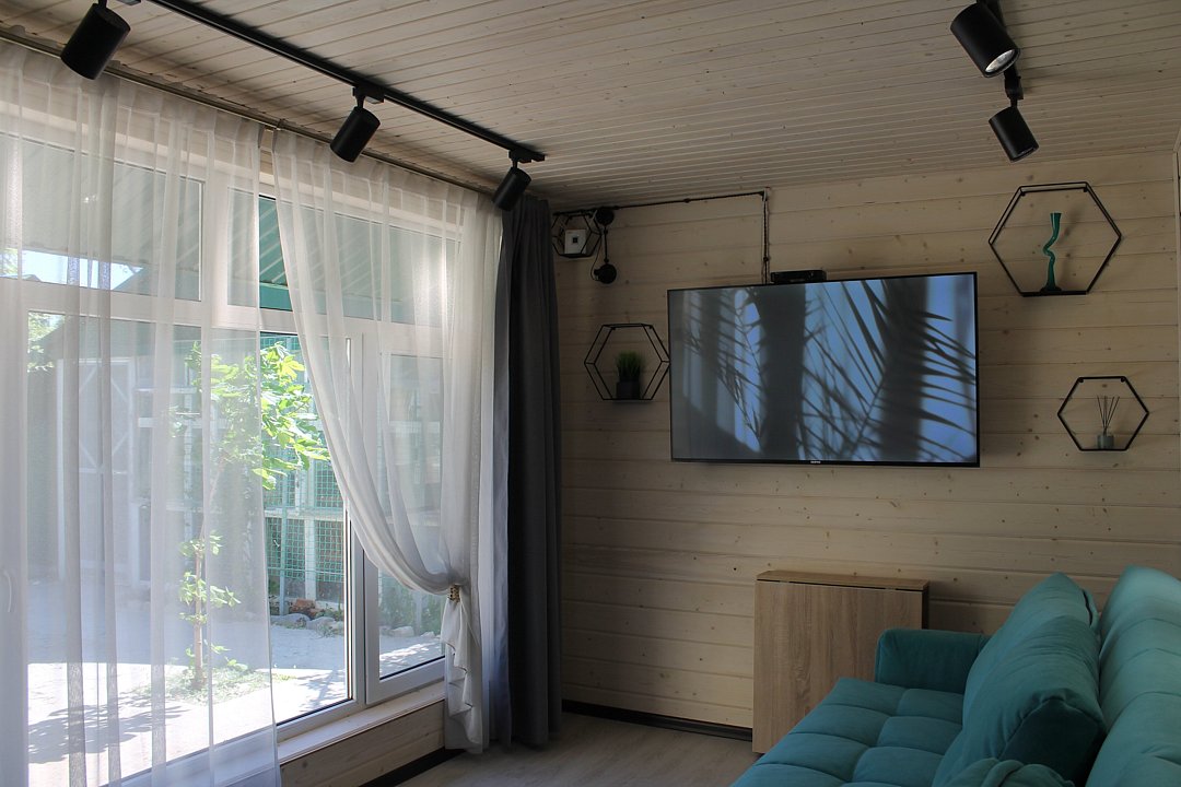 Данный вариант размещения имеет 2 комнаты и готов вместить до 6 посетителей. Внутри имеется все необходимое для жизни, начиная от кондиционера и холодильника, заканчивая водонагревателем и стиральной машинкой.