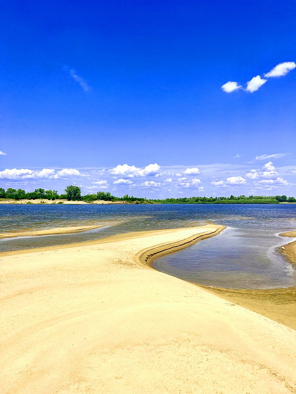 Есть свой спуск к Волге, как пеший так и для автомобилей.