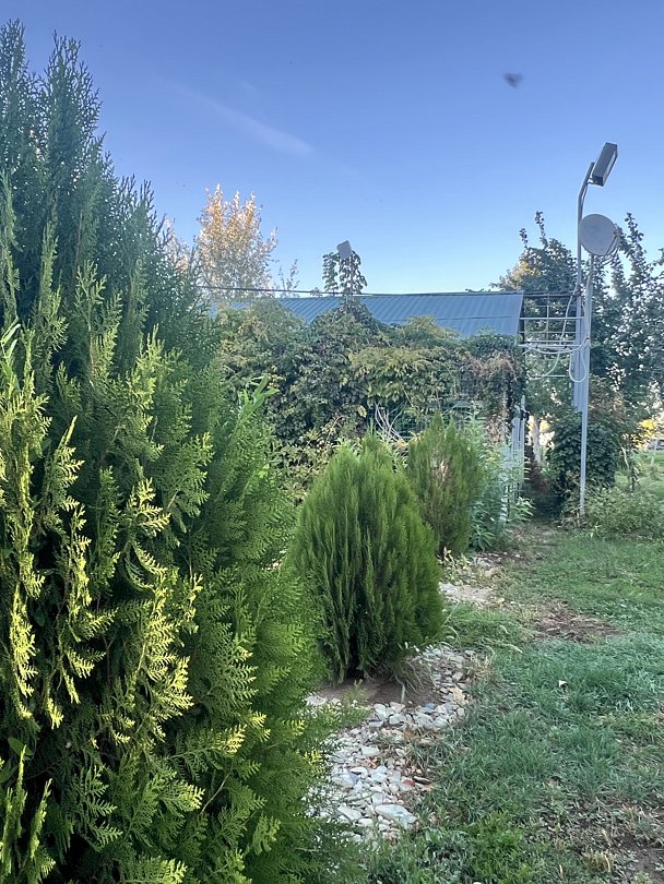 На территории свой фруктовый сад, фрукты можно брать и кушать.