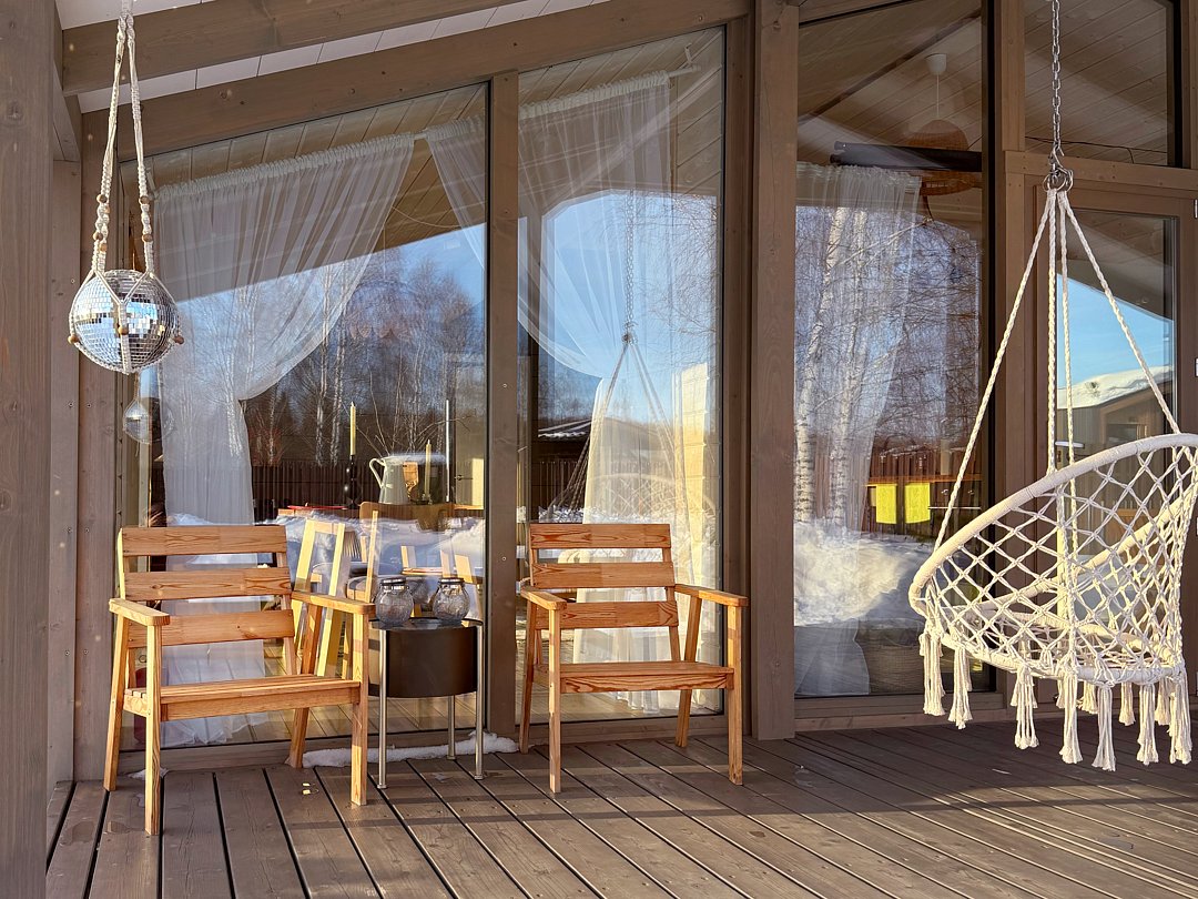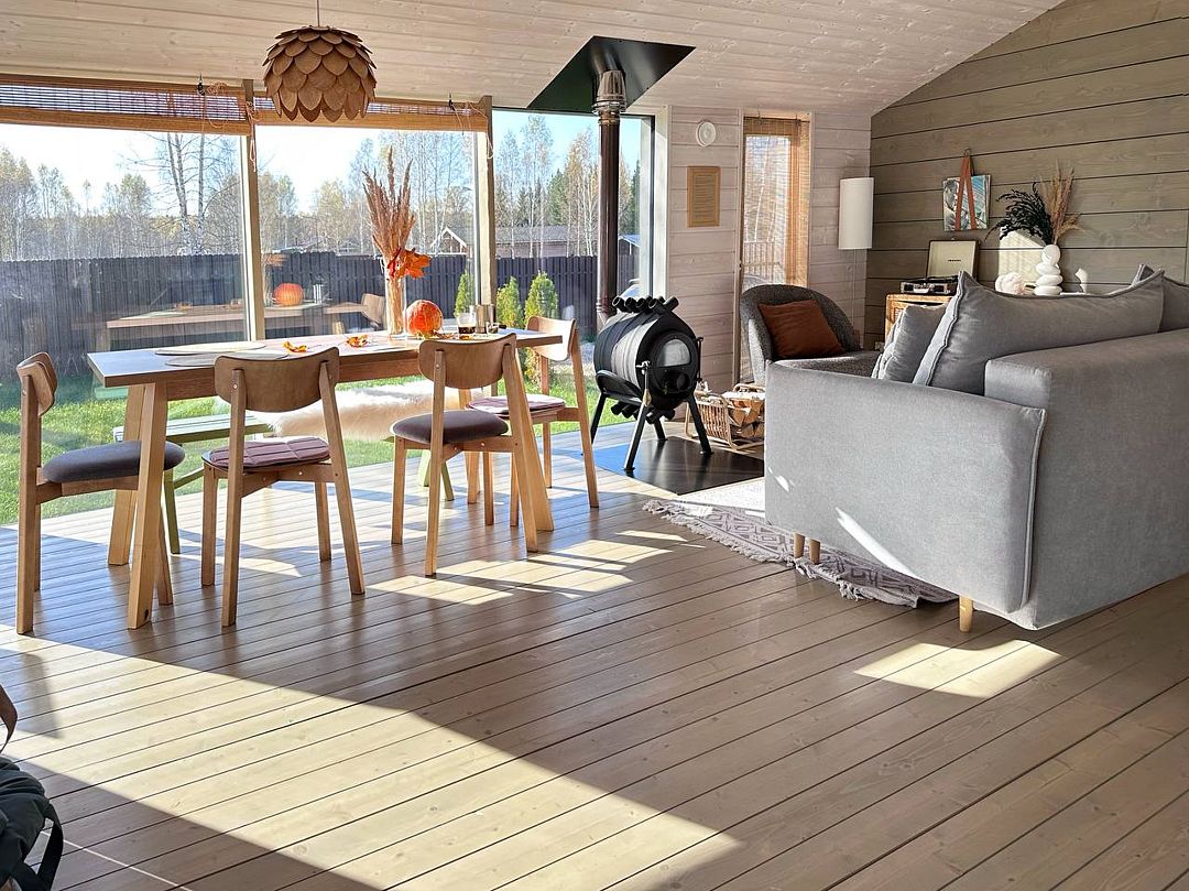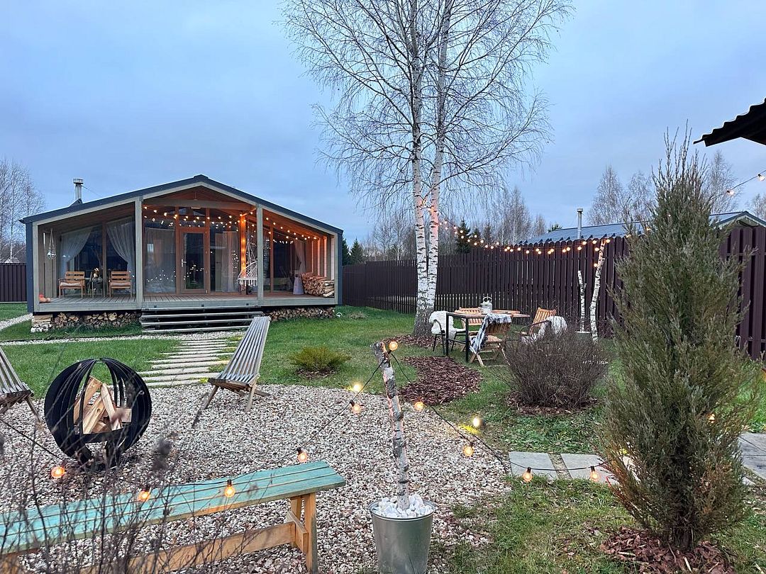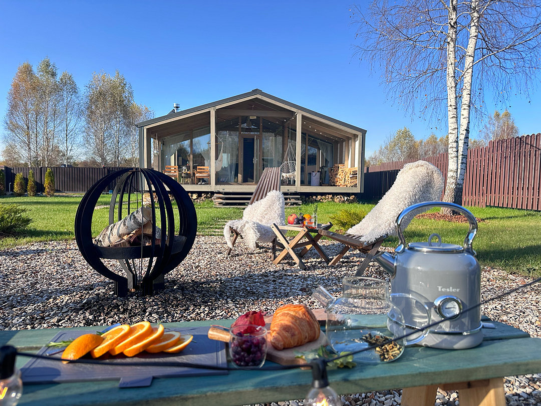 Проснитесь на мягких белоснежных простынях, выйдите на деревянную веранду, укутавшись в тёплый халат, и услышьте пение птиц. Позанимайтесь йогой на восходе солнца, почитайте книгу, наслаждаясь чашечкой ароматного кофе в плетёном кресле. Слушайте виниловые пластинки, загорайте на зелёной лужайке, любуйтесь красочными закатами под мягким пледом в окружении близких людей. Наблюдайте, как языки пламени играют на костре, где уже готовится ваше любимое блюдо. Аромат наполняет воздух и шепчет: «Жизнь прекрасна!»