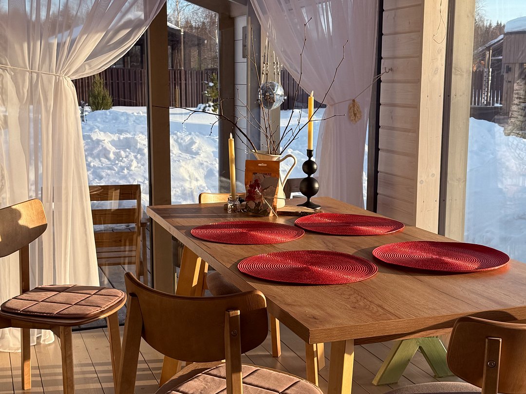 Уютный дом с баней на дровах и горячей купелью с гидромассажем, где комфорт и забота о гостях продуманы до мелочей. Гостей ждут кровати с ортопедическими матрасами, удобные диваны.