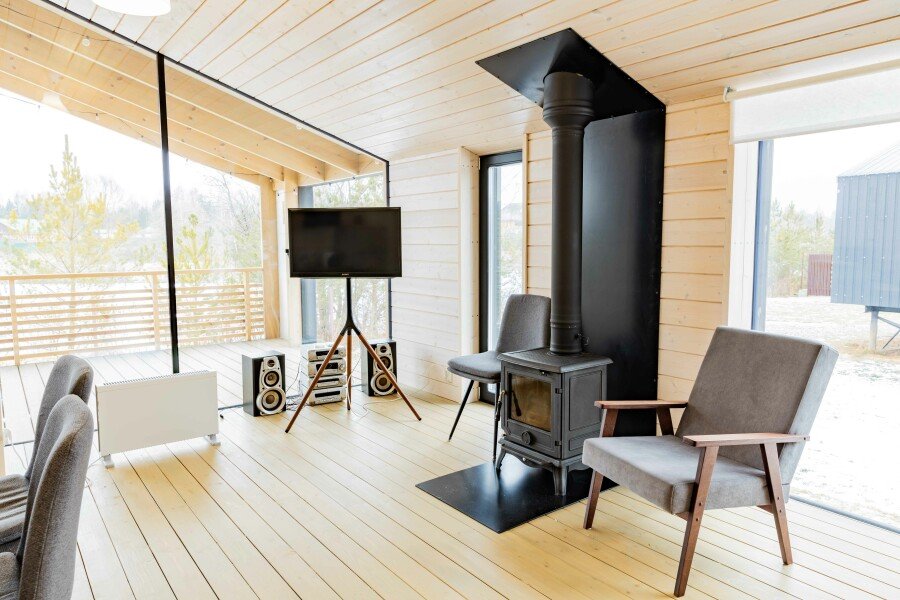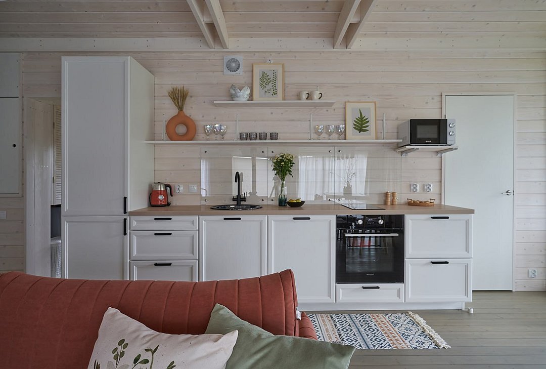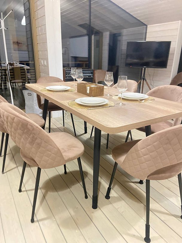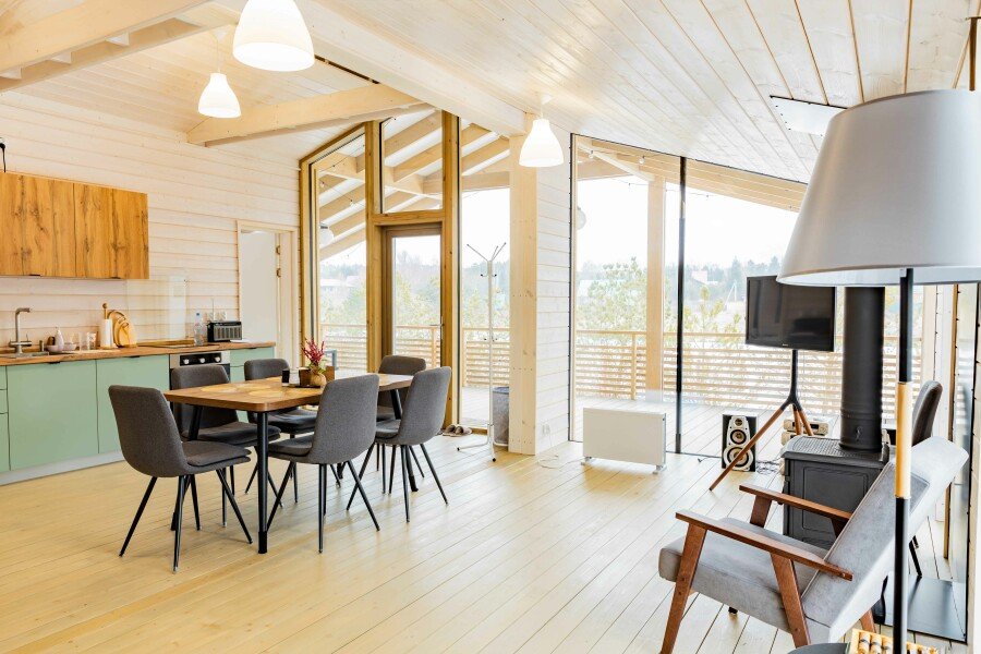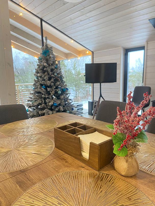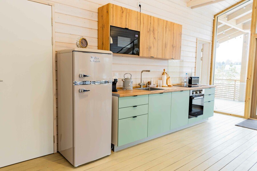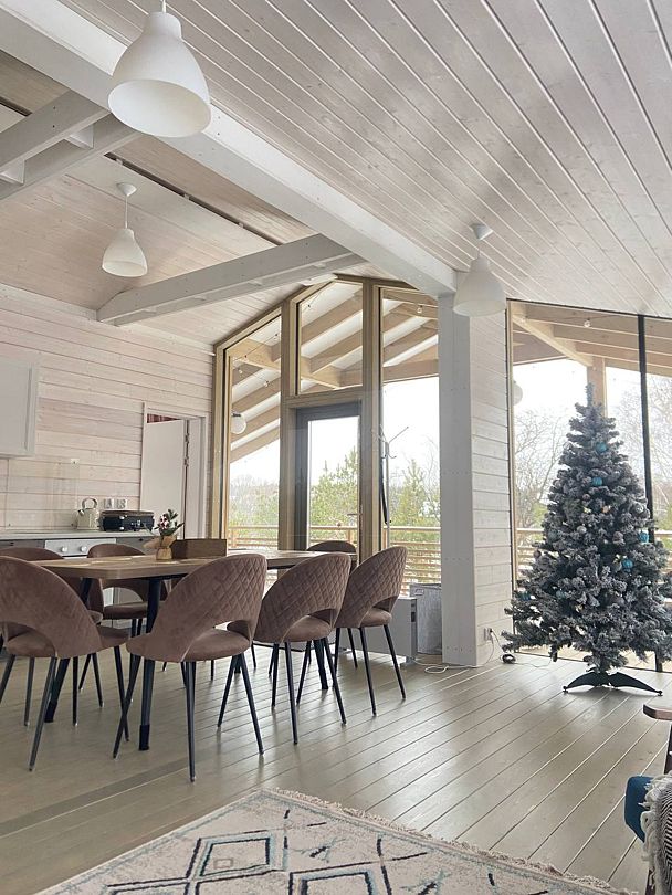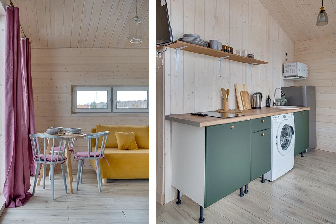 Комфортабельные дома оборудованы всем необходимым: телевизором со Smart TV, посудомоечной и стиральной машинами, духовкой, плитой, холодильником, капсульной кофемашиной, полным комплектом посуды, феном, утюгом и высокоскоростным интернетом. Постельное белье, полотенца, моющие и гигиенические средства предоставляются.
