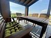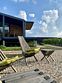 На террасе имеется мебель: стол, лавочка и кресла.