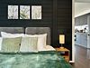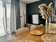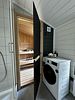 Кухня-гостиная оснащена необходимыми принадлежностями и техникой: холодильник, посудомоечная машина, кофемашина.