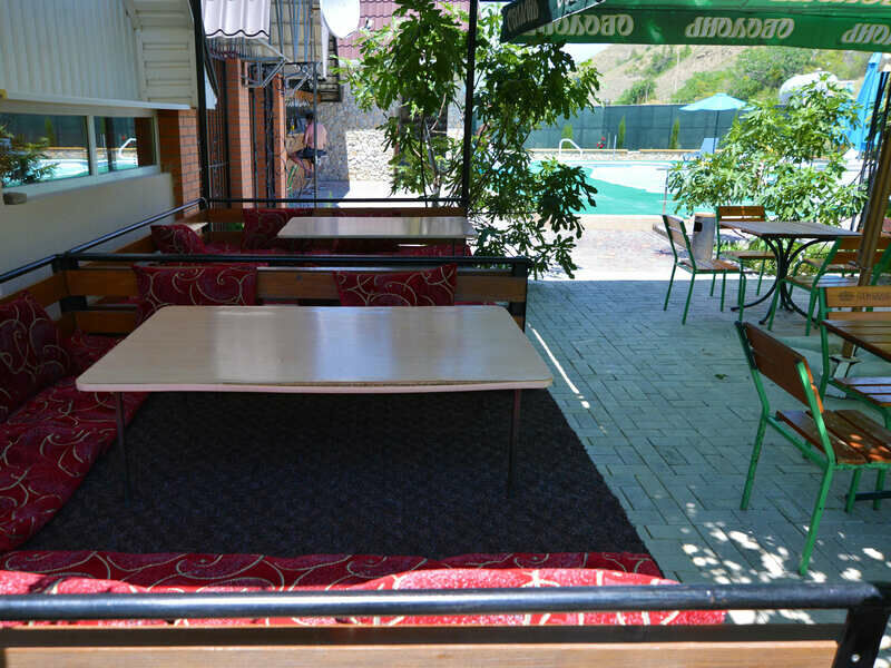 Питаются постояльцы в местной столовой, можно заказать только завтраки или 2-3-х разовый рацион по меню. В открытом доступе бассейн на террасе с пресной водой, рядом находится пул-бар с напитками. Гости могут отдыхать на шезлонгах или рядом в беседке. Из развлечений только бильярд и настольный теннис.
