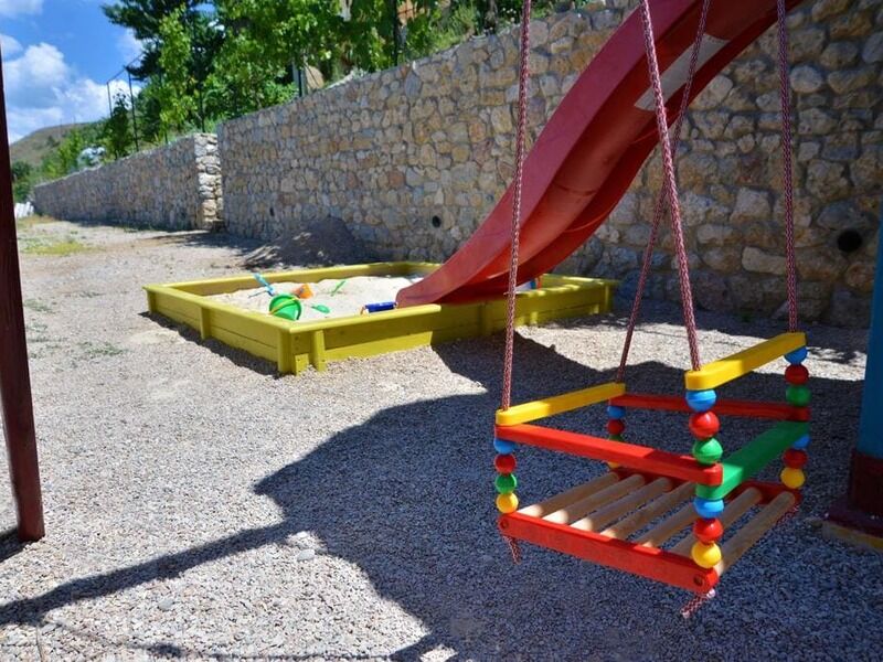 Для детей организованная площадка на заднем дворе с горкой и песочницей. В бассейне есть отдельная неглубокая секция для малышей. До пляжа 600 м, состоит он из песка и гальки. Работают пункты проката шезлонгов, повсюду расставлены навесы от солнца.