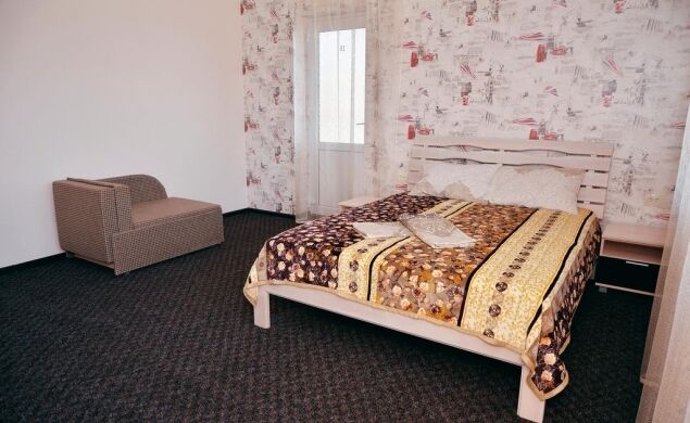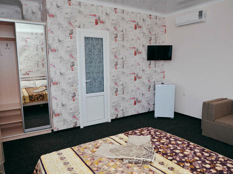 Обратите внимание! В номере в качестве основных мест предоставляется двуспальная кровать и раскладной диван.