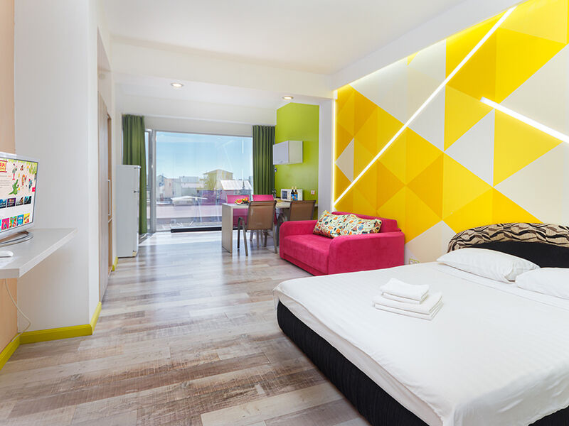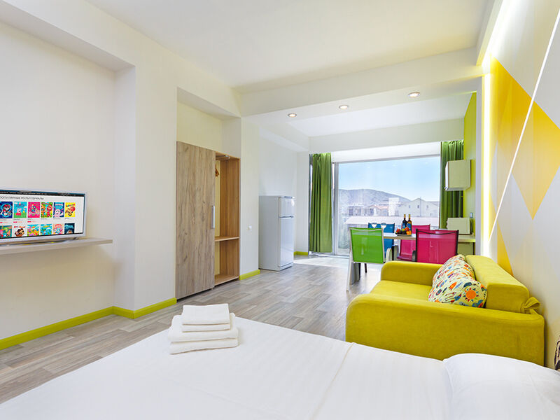 - уютные просторные номера с панорамными окнами и мини-кухней создают домашнюю атмосферу и радуют глаз современным дизайном.