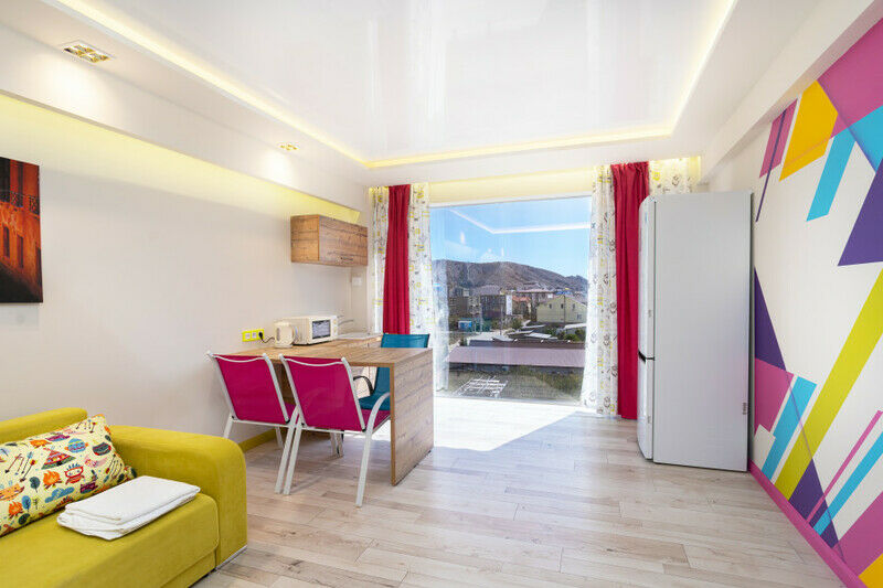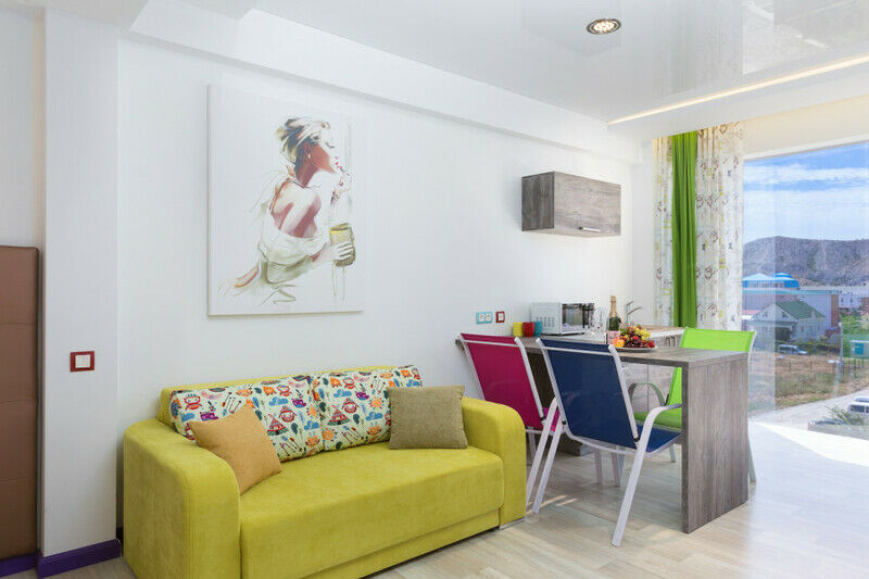 Короткий отпуск с друзьямиШикарный девичникОчень стильные номера, есть и окно, которое можно открыть, и кондиционер, самый классный душ,что мне попадался в отеле(напор и скорость переключения температур 😍), ужинать нам тоже в в отеле понравилось, а завтракали и обедали мы, не выходя из номера, есть чайник, микроволновка, посуда, все необходимое. Нам дали и локации, куда сходить в Судаке и куда съездить, администратор очень отзывчивая и приятная. К горничным, кстати, вопросики есть: собирая утром постельное белье, в ящике дивана нашли б/у комплект постельного и подушку 😂 а заселившись, удивлялись, что на 4х не положили белье и подушки сразу. Все принесли по первому требованию, конечно же, и когда нам показалось, что кондиционер плохо работает, мастер тут же пришел и все настроил. Приятно, что все вопросы решаются так оперативно ☺ плюс очень красиво и уютно там, рекомендую всем.