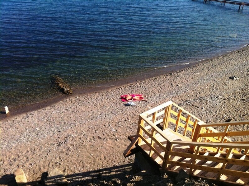 С территории базы есть два выхода на песчано-галечный пляж и пляж с каменным покрытием. Доступ на эти пляжи ограничен для посторонних лиц. В 200 м от базы есть общественный пляж. Здесь отличные места для занятия дайвингом, подводной охоты и морской рыбалки.