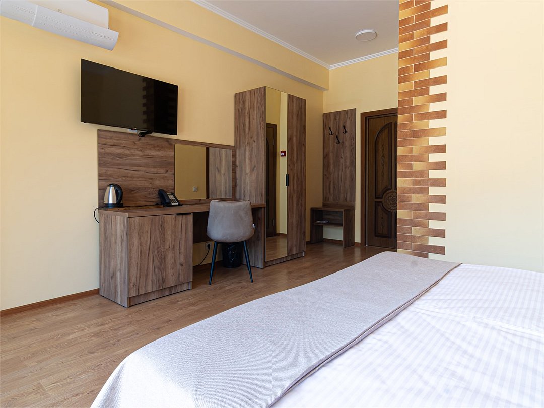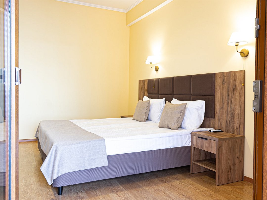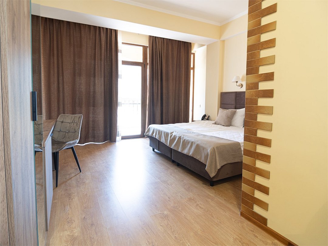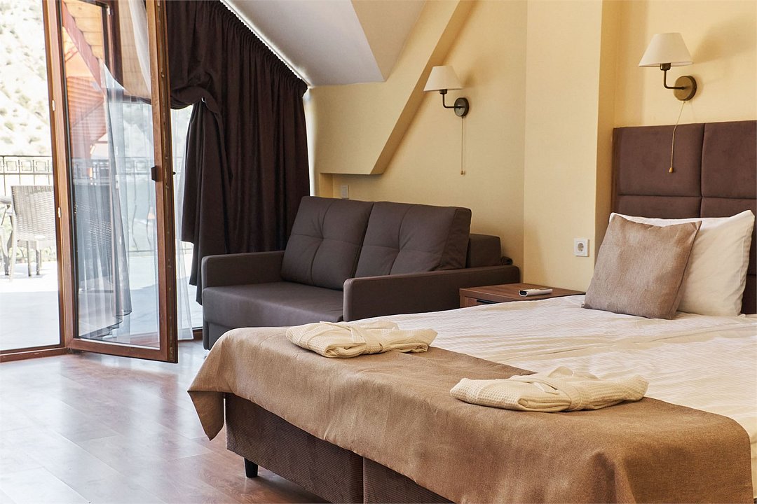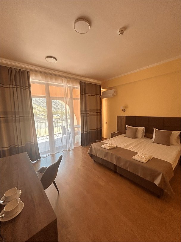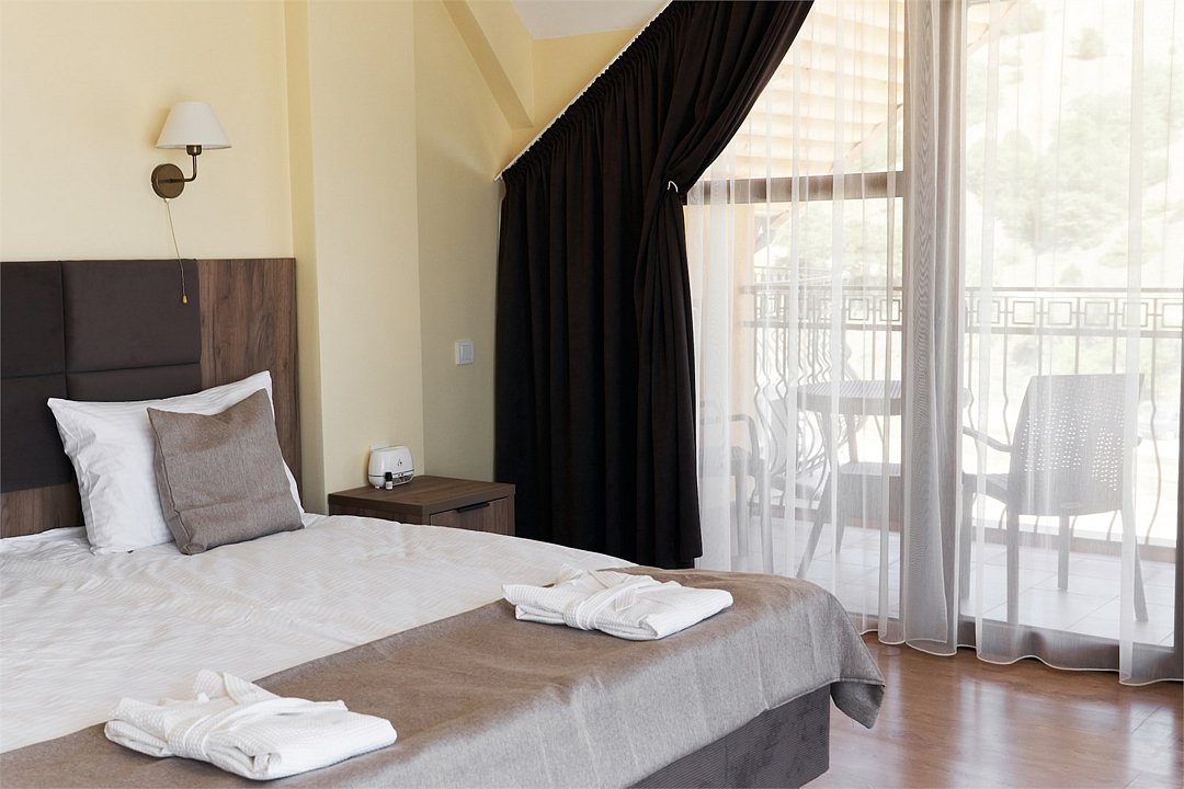 Однокомнатный номер с одной двуспальной кроватью или двумя раздельными кроватями. Площадь номера - 25м². Балкон/Лождия: нет Вид из номера: на горы/море Номер рассчитан на проживание одного-трех человек. ❗️В номере: ЖК-телевизор Мини-бар Сплит-система Ванная комната Комфортабельная мебель ⛰ Что включено в ваше размещение: Уборка раз в 3 дня, услуги прачечной (платно) Для вашего комфортного пребывания в каждом номере есть удобства: тапочки, набор махровых полотенец, фен, косметический набор для душа. Завтрак Разрешено размещение с животными (по запросу)Услуги и удобства