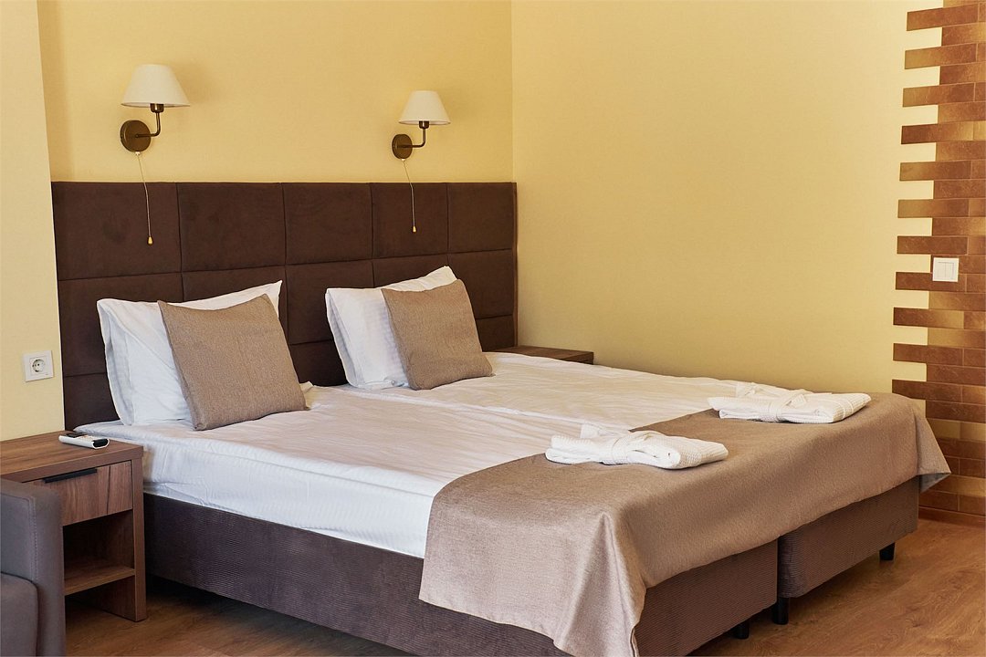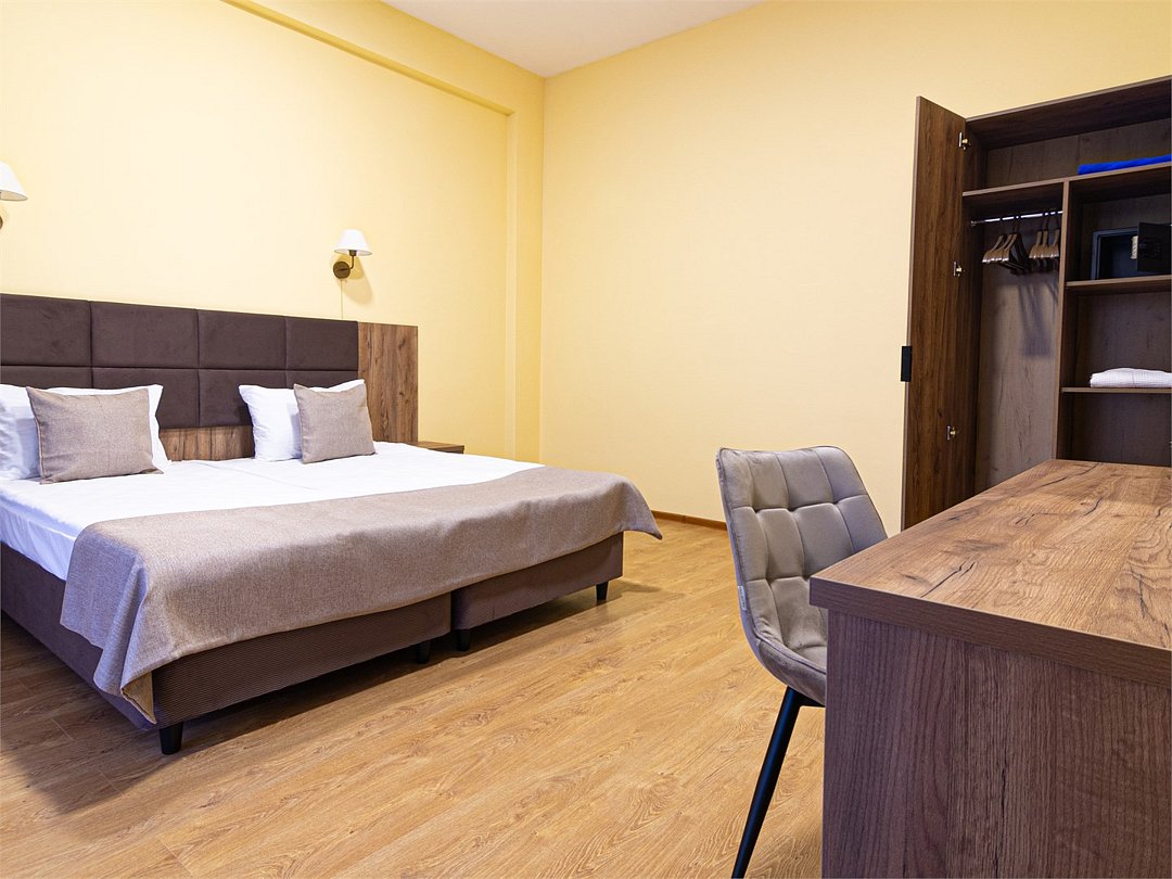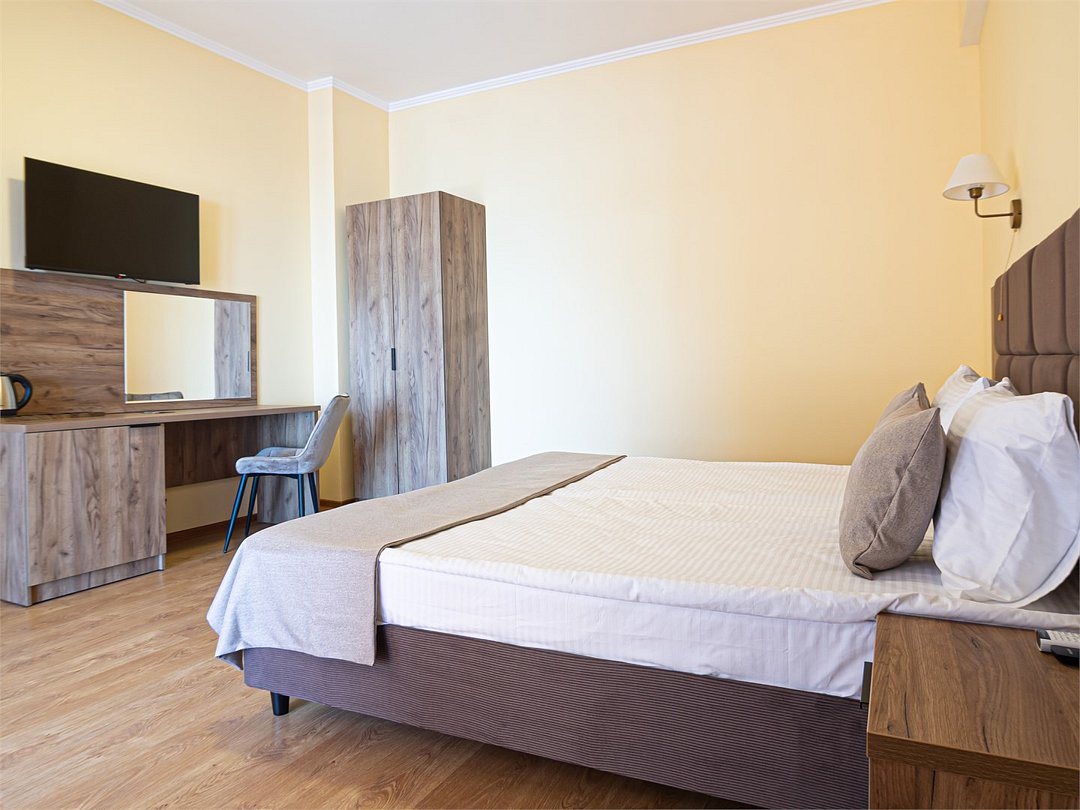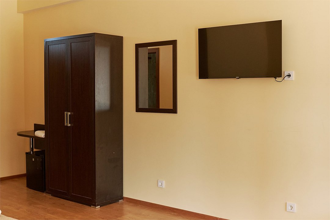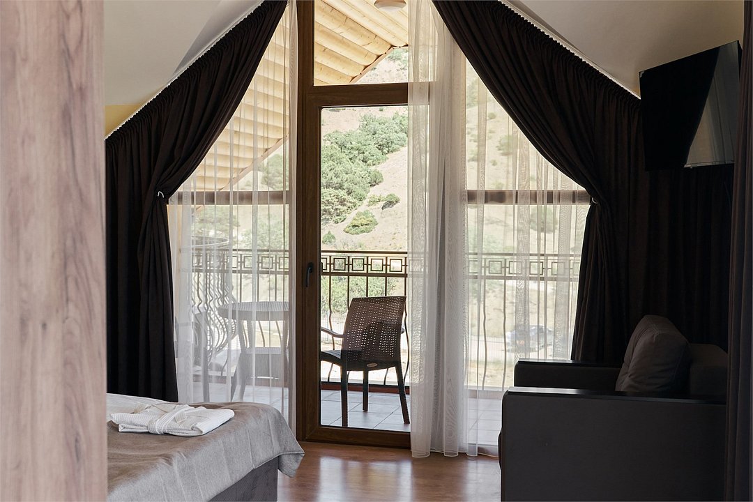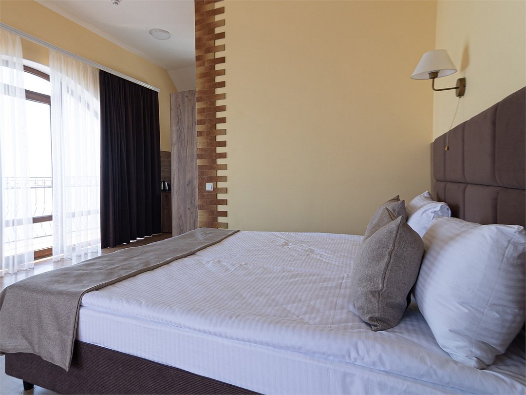 Однокомнатный номер с одной двуспальной кроватью или двумя раздельными кроватями. Площадь номера - 25м². Балкон/Лождия: нет Вид из номера: на горы/море Номер рассчитан на проживание одного-трех человек. ❗️В номере: ЖК-телевизор Мини-бар Сплит-система Ванная комната Комфортабельная мебель ⛰ Что включено в ваше размещение: Уборка раз в 3 дня, услуги прачечной (платно) Для вашего комфортного пребывания в каждом номере есть удобства: тапочки, набор махровых полотенец, фен, косметический набор для душа. Завтрак Разрешено размещение с животными (по запросу)Услуги и удобства
