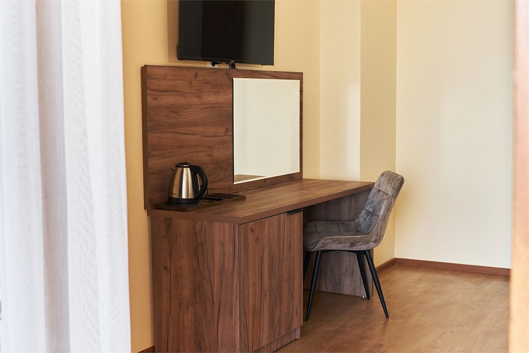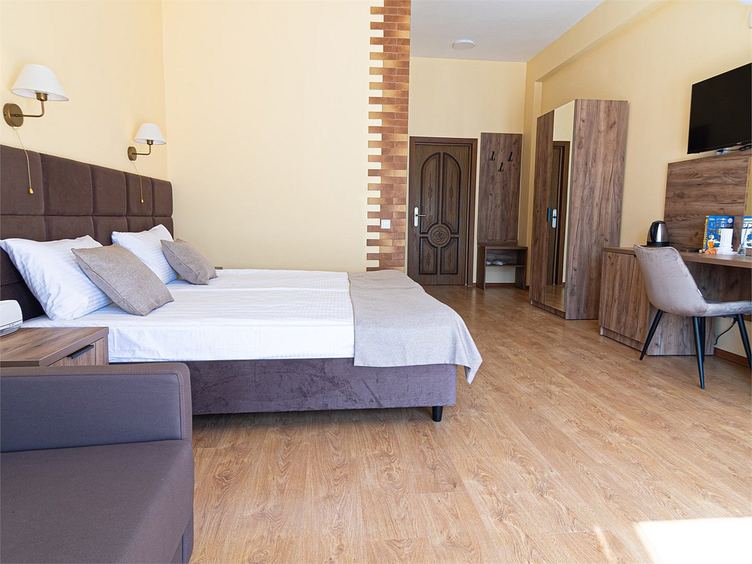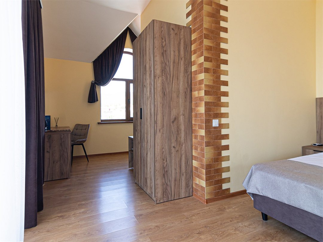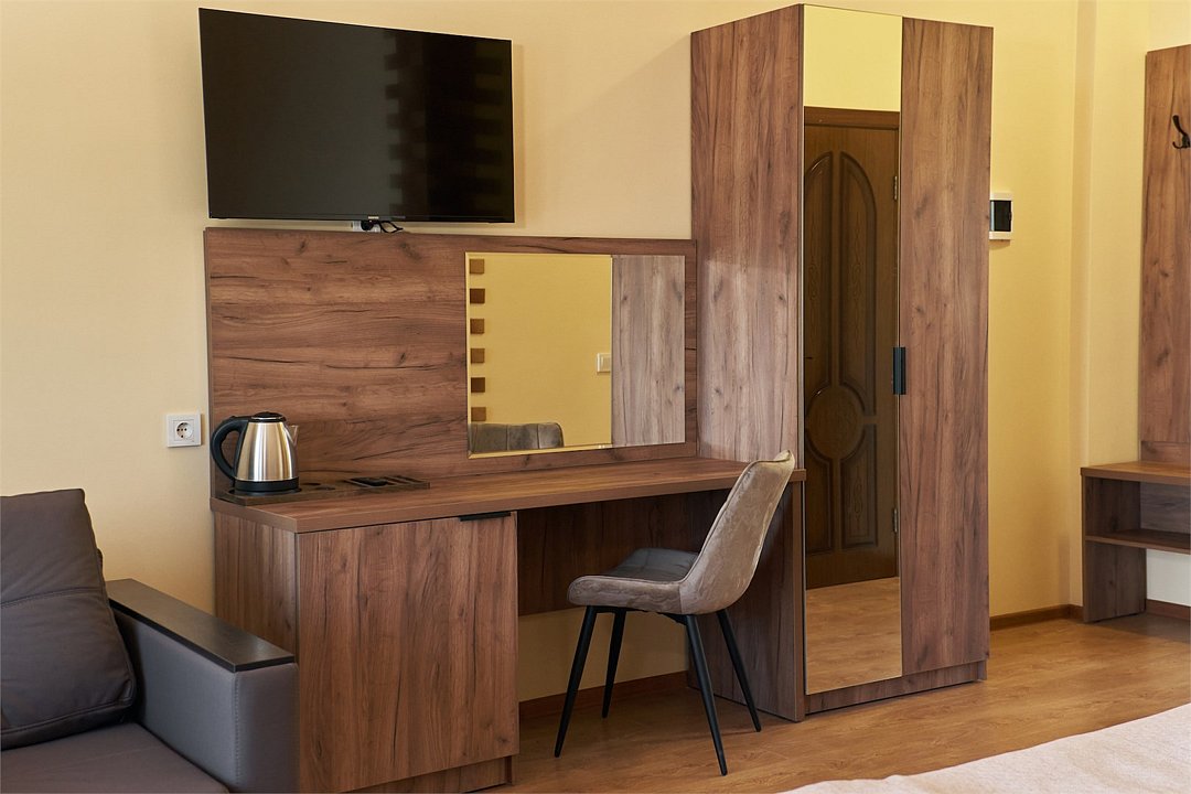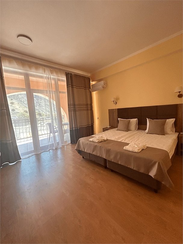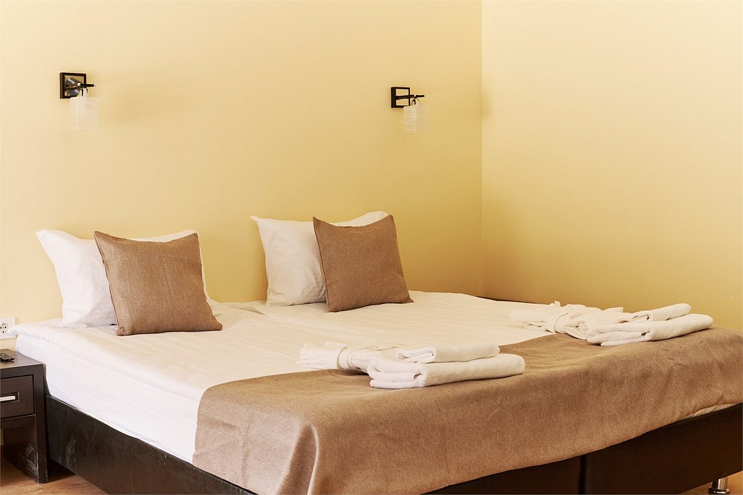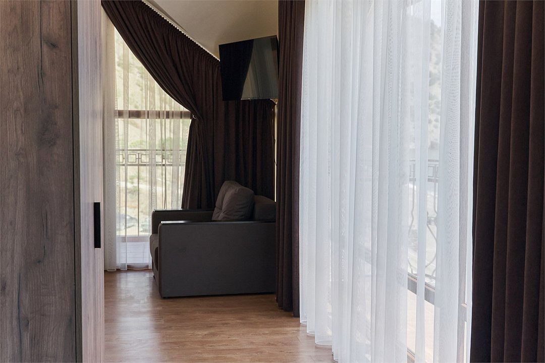 Однокомнатный номер с одной двуспальной кроватью или двумя раздельными кроватями. Площадь номера - 25м². Балкон/Лождия: нет Вид из номера: на горы/море Номер рассчитан на проживание одного-трех человек. ❗️В номере: ЖК-телевизор Мини-бар Сплит-система Ванная комната Комфортабельная мебель ⛰ Что включено в ваше размещение: Уборка раз в 3 дня, услуги прачечной (платно) Для вашего комфортного пребывания в каждом номере есть удобства: тапочки, набор махровых полотенец, фен, косметический набор для душа. Завтрак Разрешено размещение с животными (по запросу)Услуги и удобства
