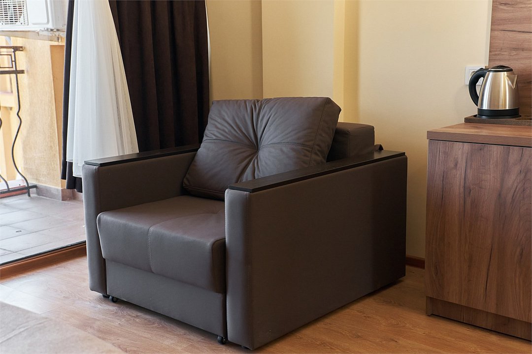 Однокомнатный номер с одной двуспальной кроватью или двумя раздельными кроватями. Номер рассчитан на проживание до 3 человек. Площадь номера: 30м². Балкон/Лождия: совмещенная терраса Вид из номера: на горы/море ❗️В номере: ЖК-телевизор Мини-бар Сплит-система Ванная комната Комфортабельная мебель ⛰ Что включено в ваше размещение: Уборка раз в 3 дня, услуги прачечной (платно) Для вашего комфортного пребывания в каждом номере есть удобства: тапочки, набор махровых полотенец, фен, косметический набор для душа. Завтрак Разрешено размещение с животными (по запросу)Услуги и удобства